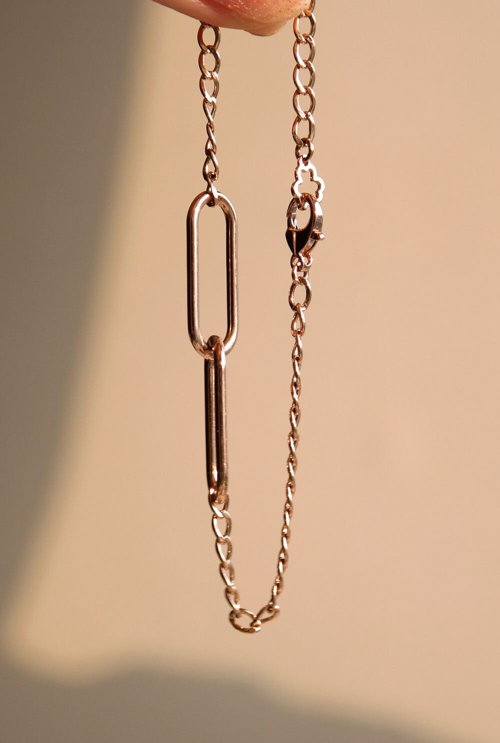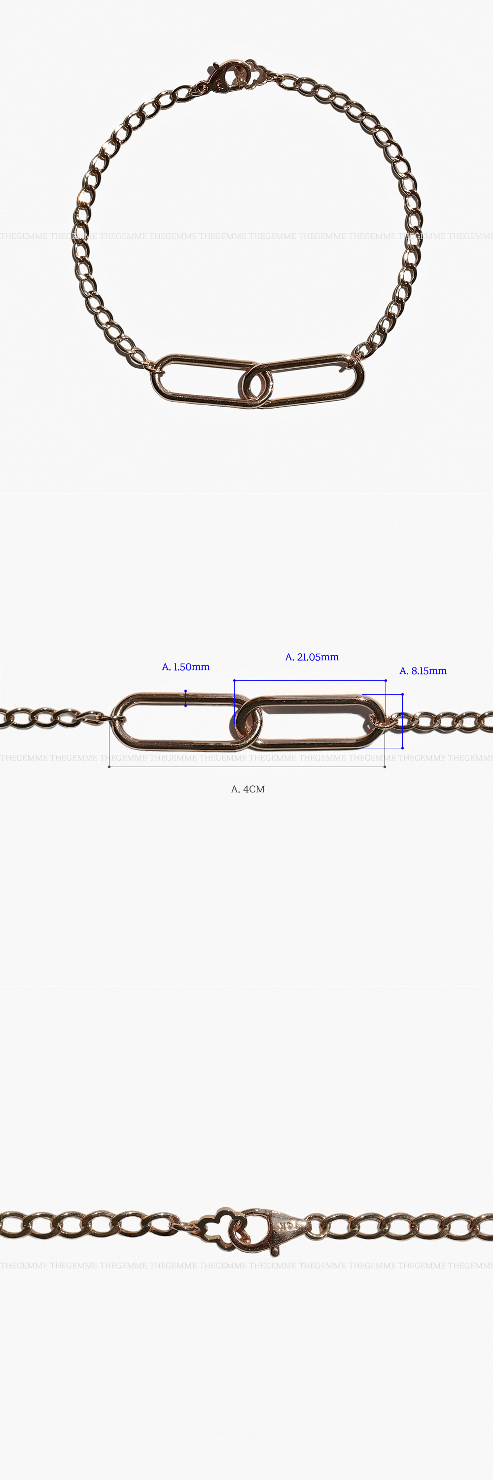 클립형 링크 모티브가 포인트로 들어간 할로우 디자인의 체인 팔찌입니다. 볼드한 느낌은 더하고 중량은 확 덜어낸 속이 비어있는 형태의 할로우 체인 팔찌에요. 14K 17CM 기준으로 약 1돈이 조금 못 나오는 중량입니다. 할로우 스타일의 팔찌는 보여지는 것보다 가벼워서 무겁지 않은 편안한 느낌으로 착용하시기 좋답니다 :) 언제나 인기 만점인 세련된 링크 디자인의 팔찌로 사계절 내내 멋스럽게 착용하실 수 있어서 데일리 팔찌로 활용하시기에도 정말 좋아요. 세련된 스타일의 팔찌를 찾으시는 분들에게 추천해 드릴게요! 💜