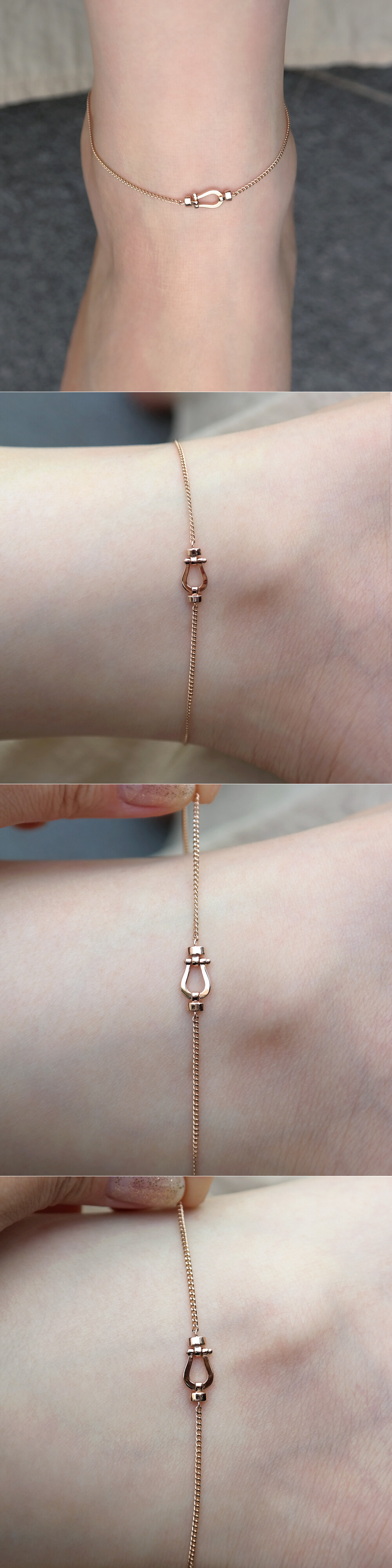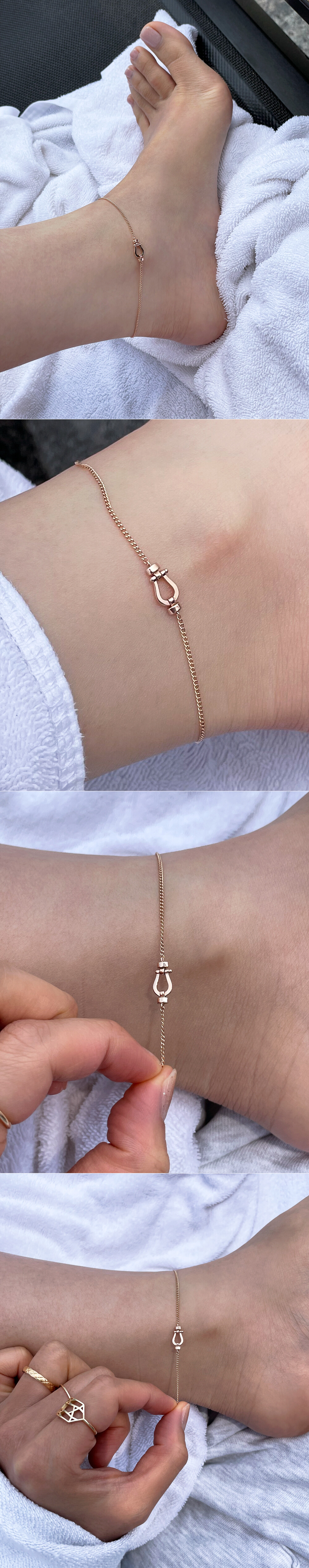 미니멀한 디자인의 말발굽 모티브가 포인트로 들어간 발찌입니다. 🧲 심플하지만 세련된 느낌의 포인트 발찌로 활용하시기 좋아요 :) 체인은 적당한 두께감을 가진 5푼 굵기의 체인과 함께 레이어드 되었습니다. (옵션에서 팔찌로도 주문 가능합니다!) 데일리 및 포인트 발찌를 찾으시는 분들께 추천해 드릴게요. ❤️
