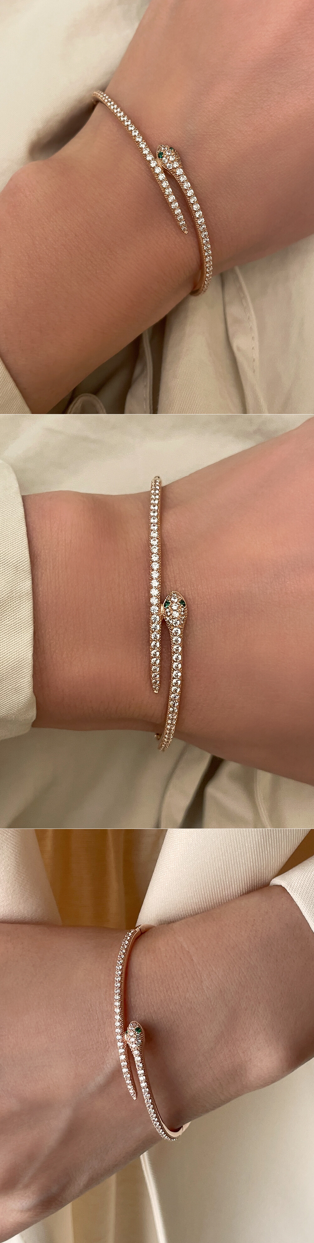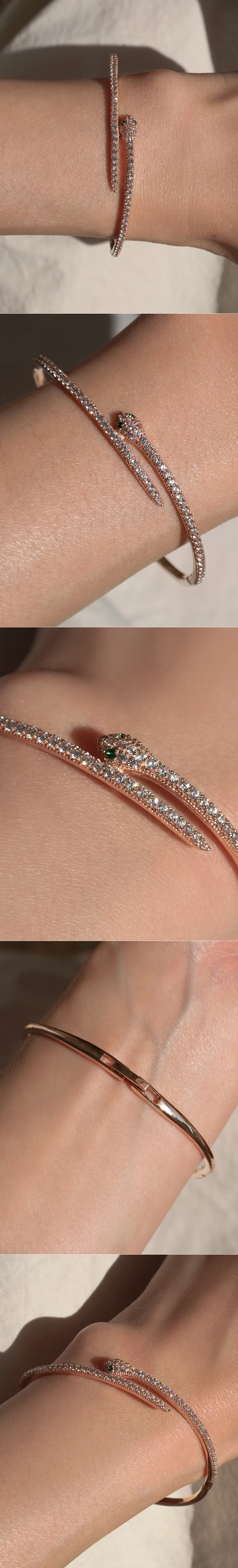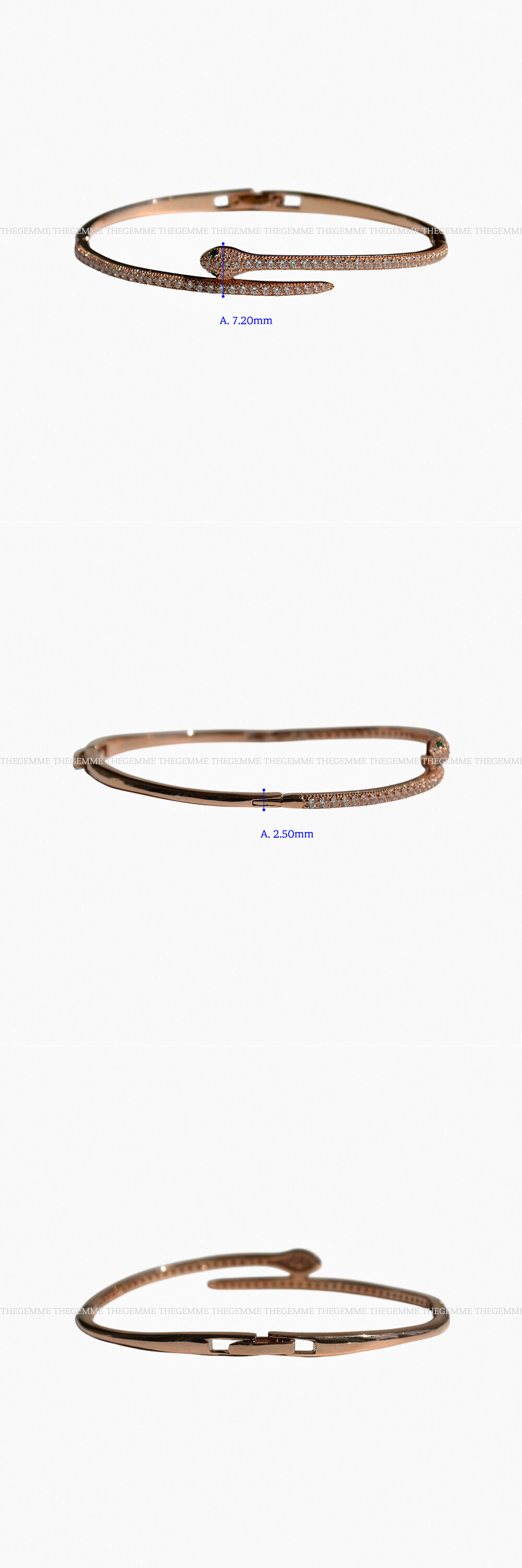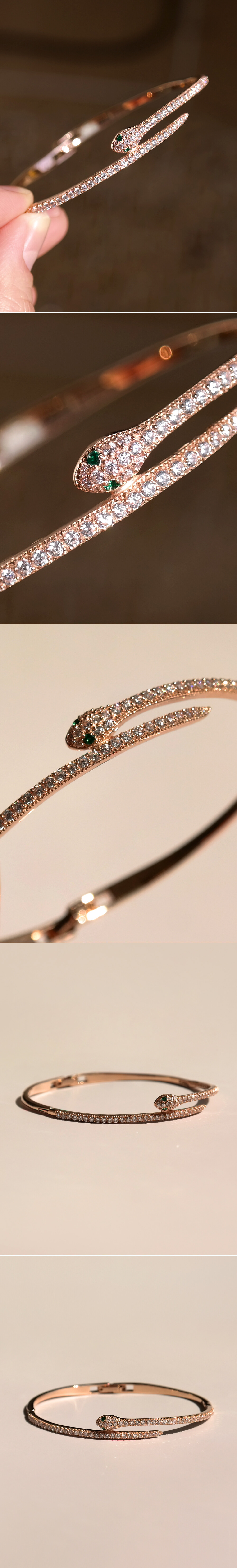 슬림한 스타일의 뱀 디자인 뱅글 팔찌입니다. 장식된 스톤은 모두 큐빅으로 약 71P가 세팅되구요, 원하시는 경우 다이아몬드 (천연 & 랩) 세팅 가능하오니 참고해 주세요. 심플한 버클 장식 디자인으로 간결하면서 세련된 스타일을 연출하고 싶으신 분들에게 데일리 및 포인트 팔찌로 추천해 드릴게요! 🐍❤️