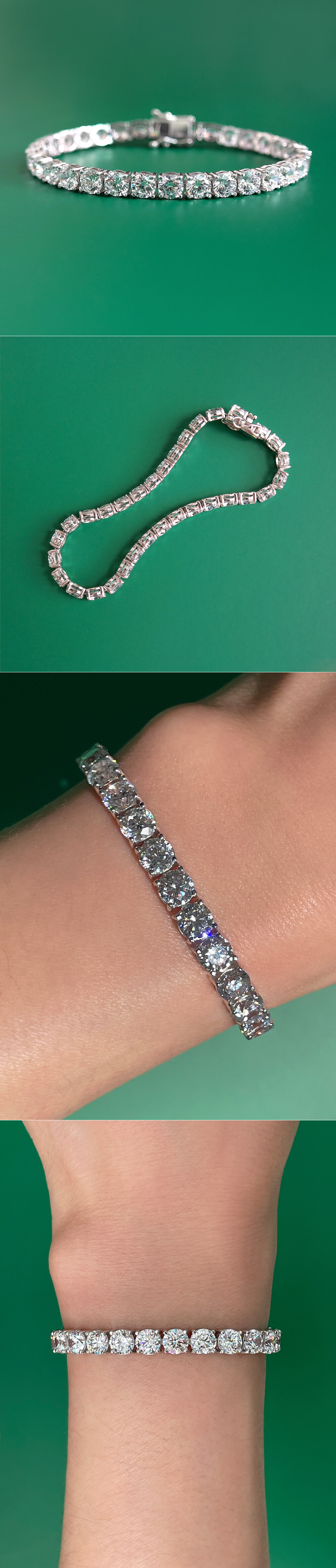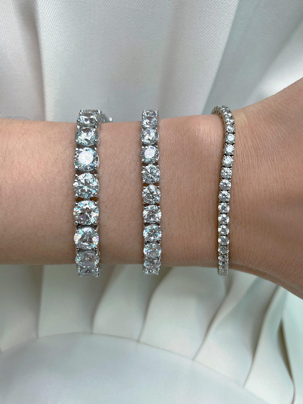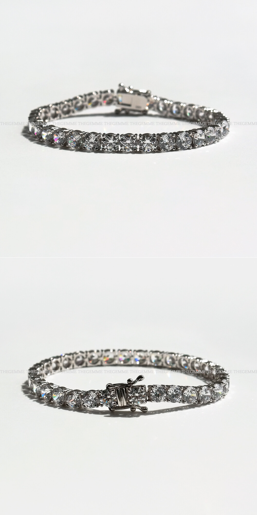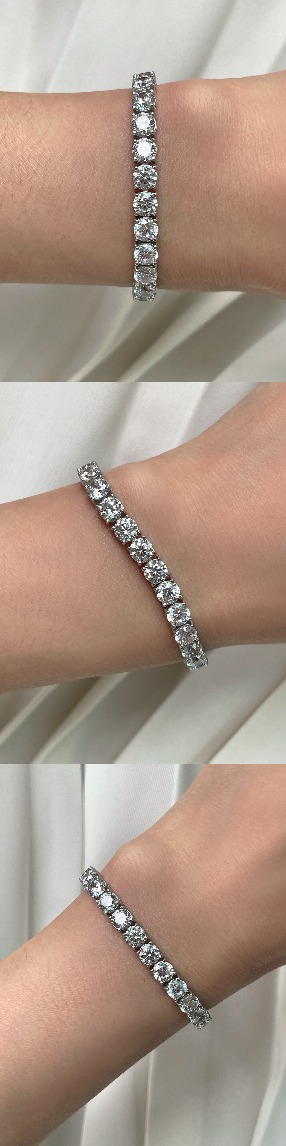기본 네발 프롱 디자인의 테니스 팔찌로, 큐빅이 빠지지 않도록 세심하게 세팅되어 우아하고 고급스러운 분위기를 연출해 줍니다.
