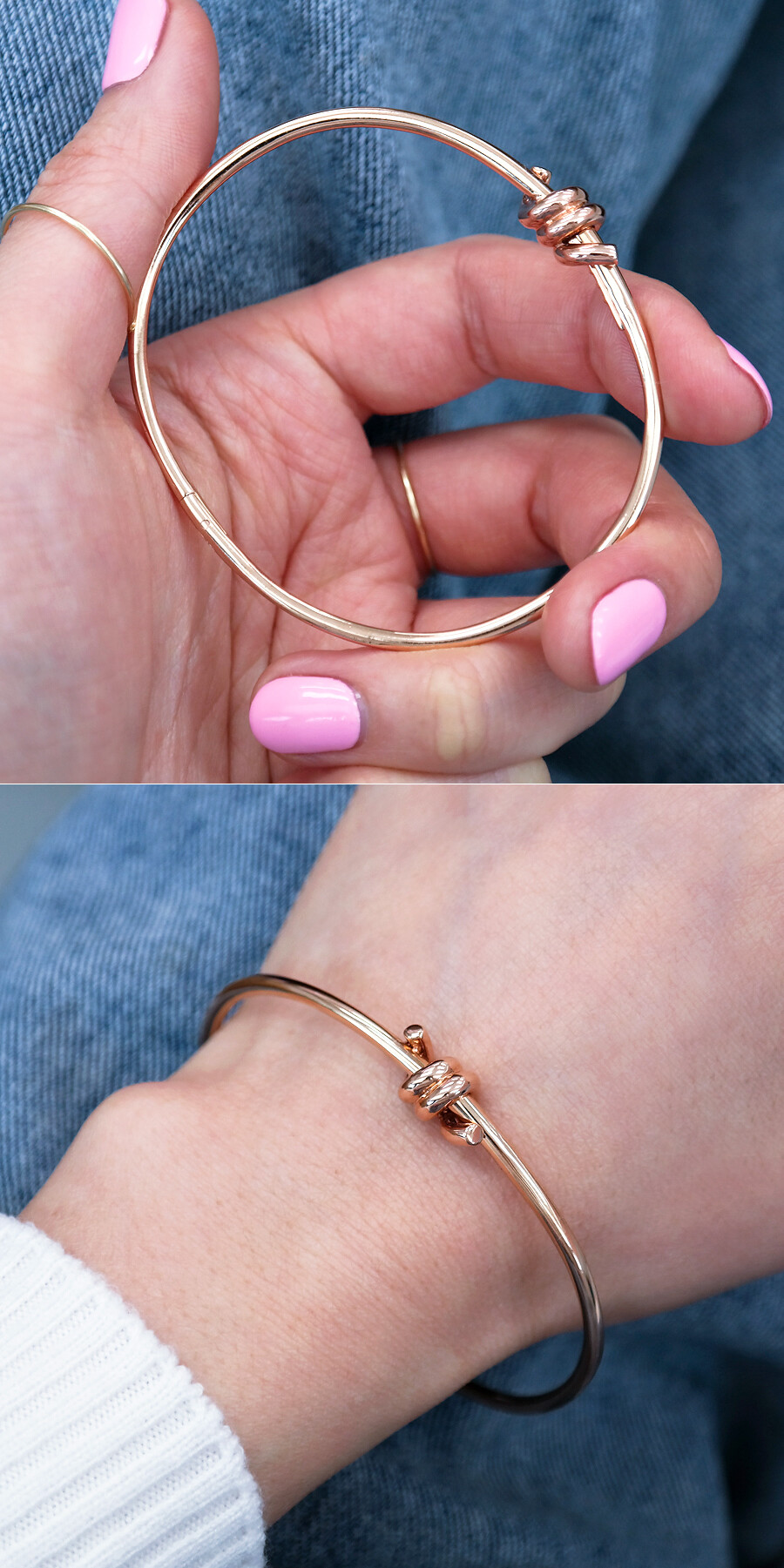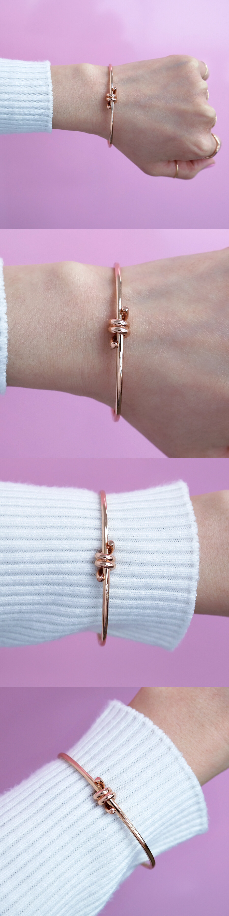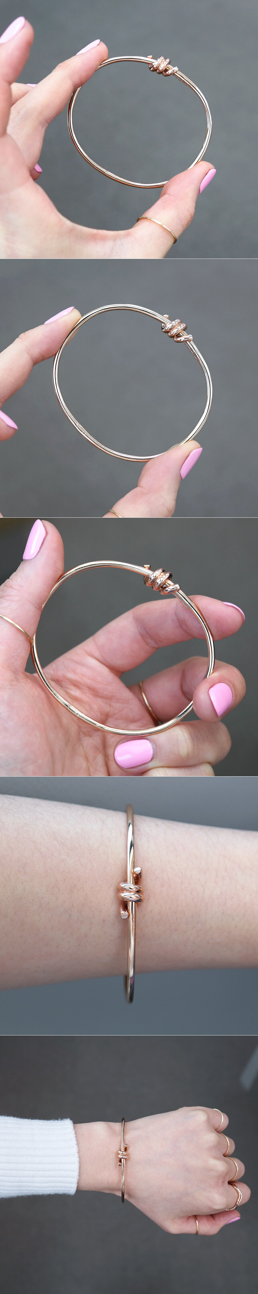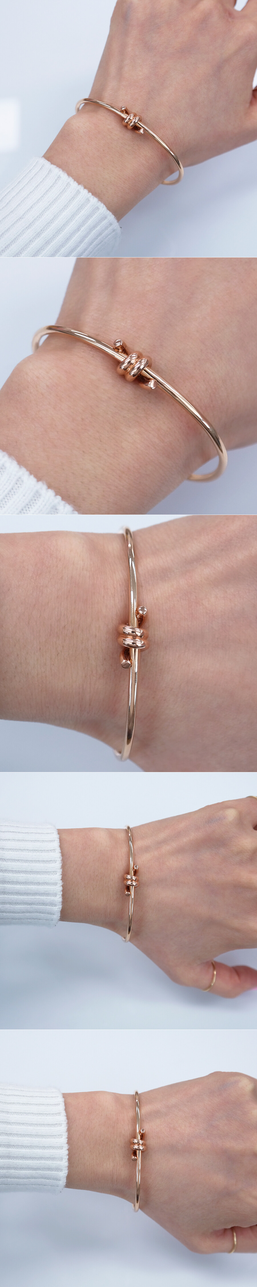 매듭 포인트 장식의 원터치 뱅글입니다. 심플하면서도 세련된 느낌의 팔찌로 멋스럽게 착용하시기 좋아요. 볼드한 중량감의 데일리 뱅글을 찾으시는 분들께 추천해 드릴게요. 🩷