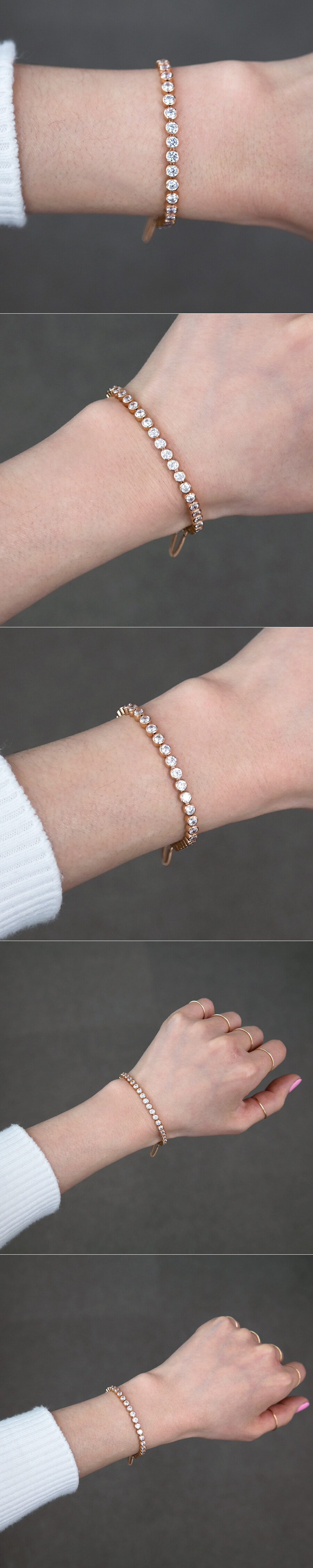 깔끔한 베젤 세팅의 테니스 팔찌입니다. 둥글둥글한 라인의 깔끔한 디자인이라 데일리 팔찌로 착용하시기 좋아요. 💜