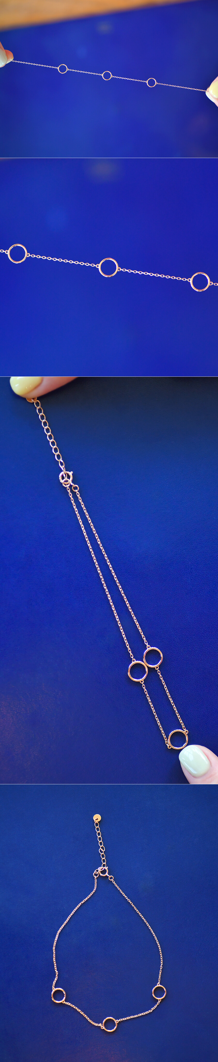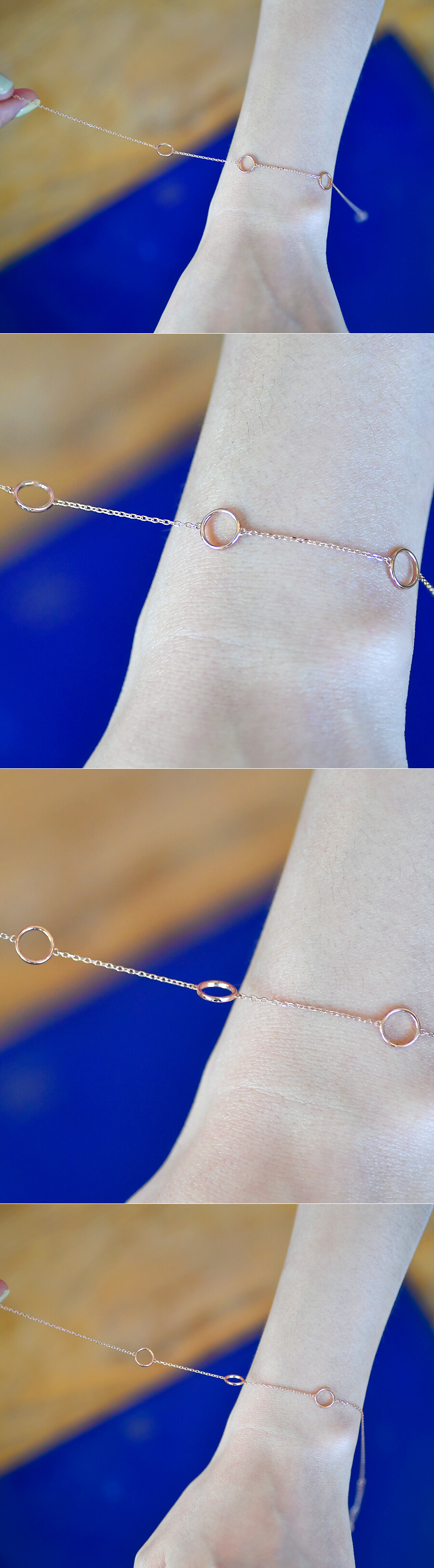 플랫한 동그라미 팬던트 장식이 연결된 발찌입니다. * 옵션에서 팔찌 사이즈로도 선택하셔서 주문 가능합니다 :)
