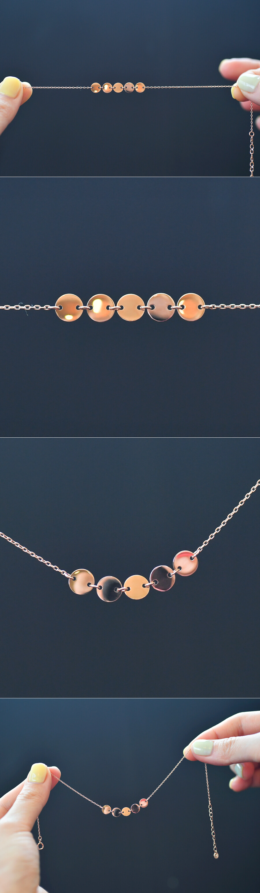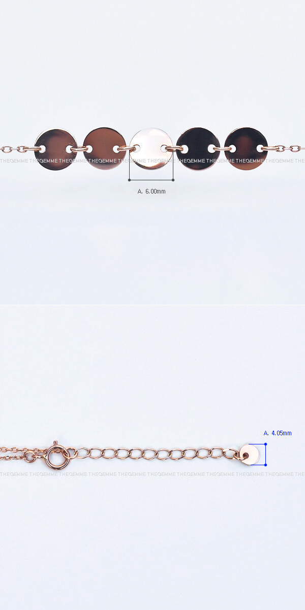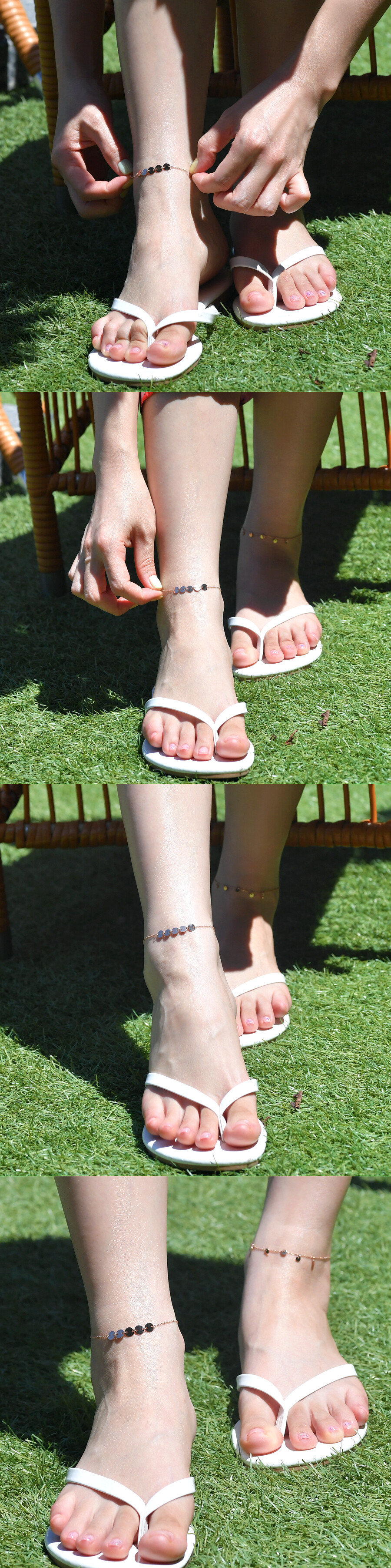 플랫한 코인 팬던트 장식이 연결된 발찌입니다. * 옵션에서 팔찌 사이즈로도 선택하셔서 주문 가능합니다 :)