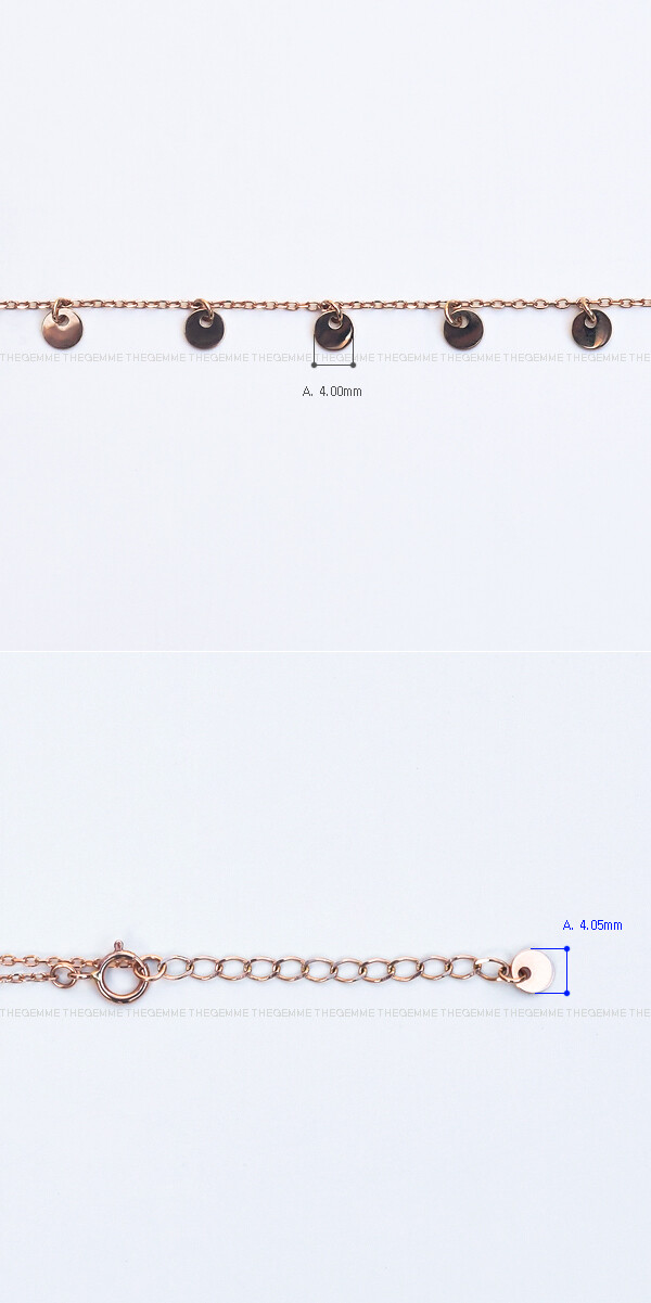 이미지상 샘플 발찌는 22CM 촬영 사진입니다. 이 제품은 주문하신 사이즈에 (+ 여유 고리 3CM) 가 포함되어 제작됩니다. * 예) 21CM 주문 시, + 3CM = 4CM까지 착용 가능합니다.