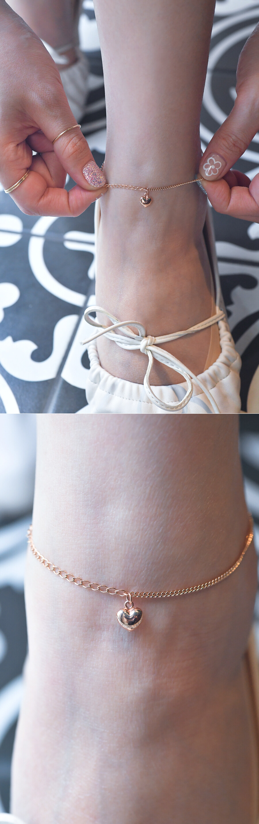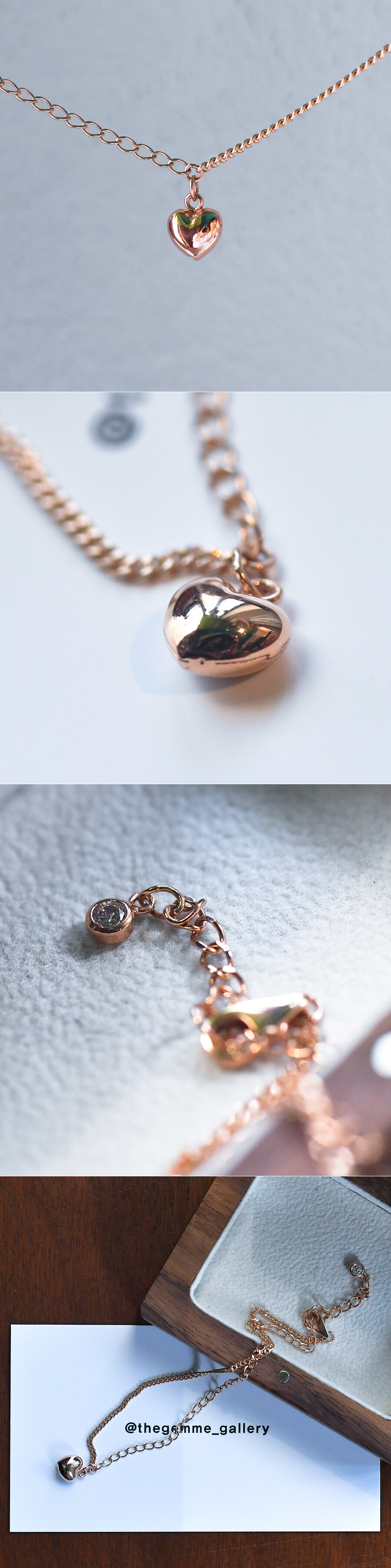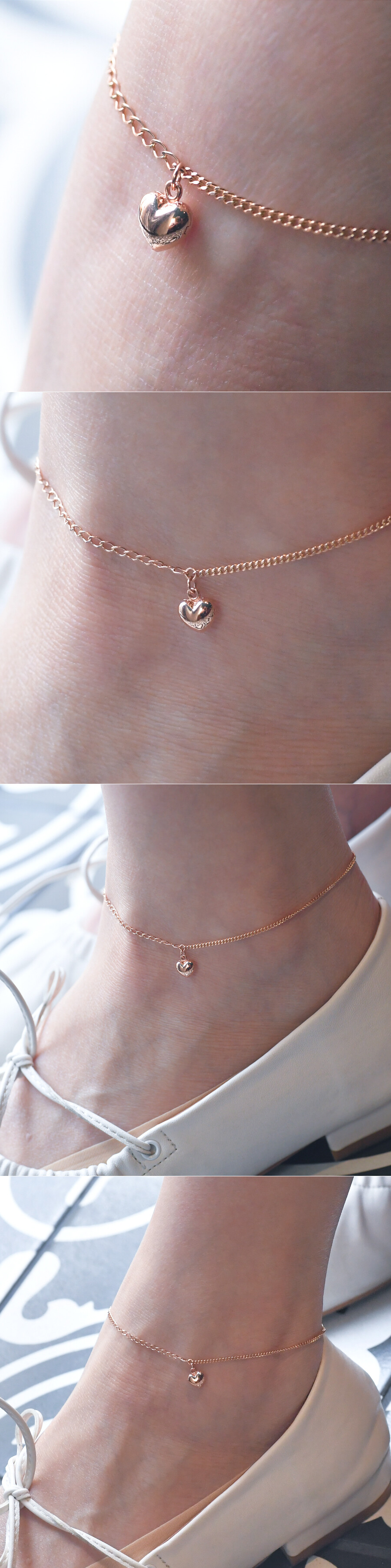 귀여운 통통 하트 장식의 발찌입니다. 팬던트 좌우로 각각 모양이 다른 믹스 체인이 연결된 디자인으로 심플하지만 유니크한 매력이 있어요. 원하시는 경우 옵션에서 팔찌 사이즈로도 주문 가능! 잠금 장식 부분에는 어여쁜 큐빅 장식이 들어가 있어요 :) ♥