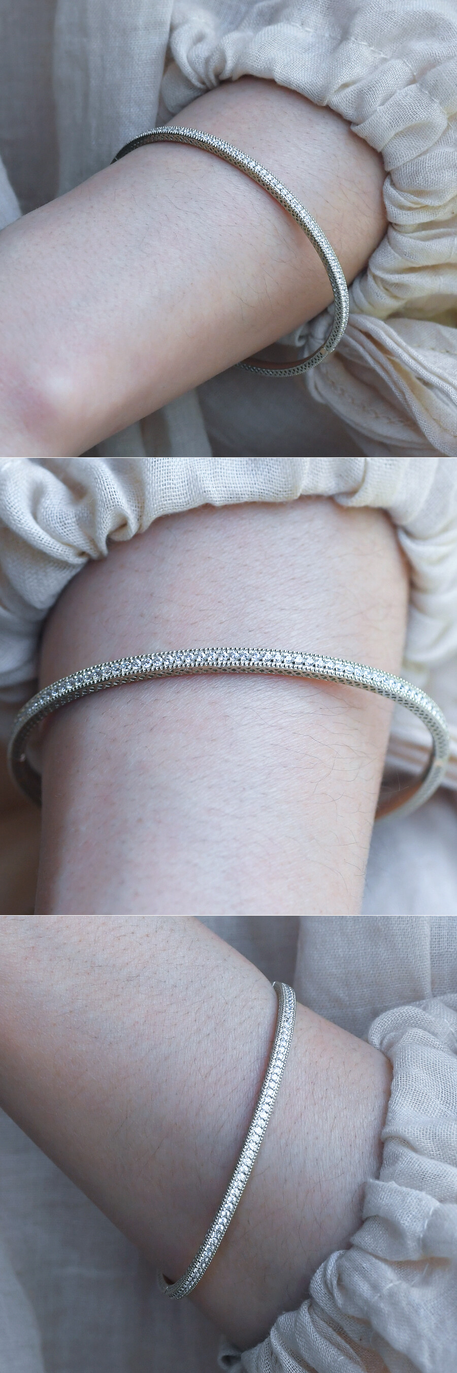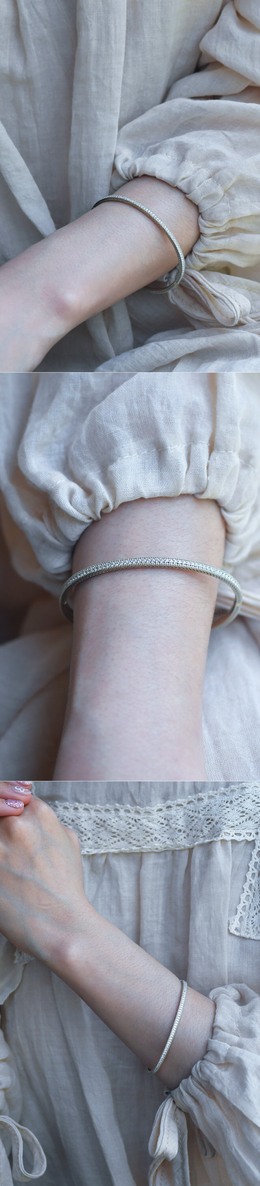 이미지상 샘플 팔찌는 17CM 촬영 사진입니다. 이 제품은 주문하신 사이즈에 맞추어 제작되며 약간은 여유 있게 주문해 주시는 것이 좋습니다. * 뱅글 스타일로 너무 타이트하게 주문 시에는 착용에 불편함이 있을 수 있습니다. (팔목 사이즈보다 대략 약 1.5~2CM 정도 크게 주문해 주시는 것을 권장합니다.)
