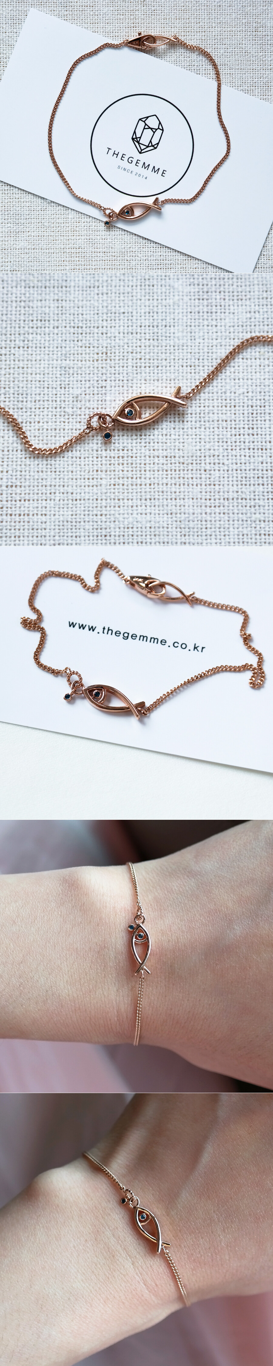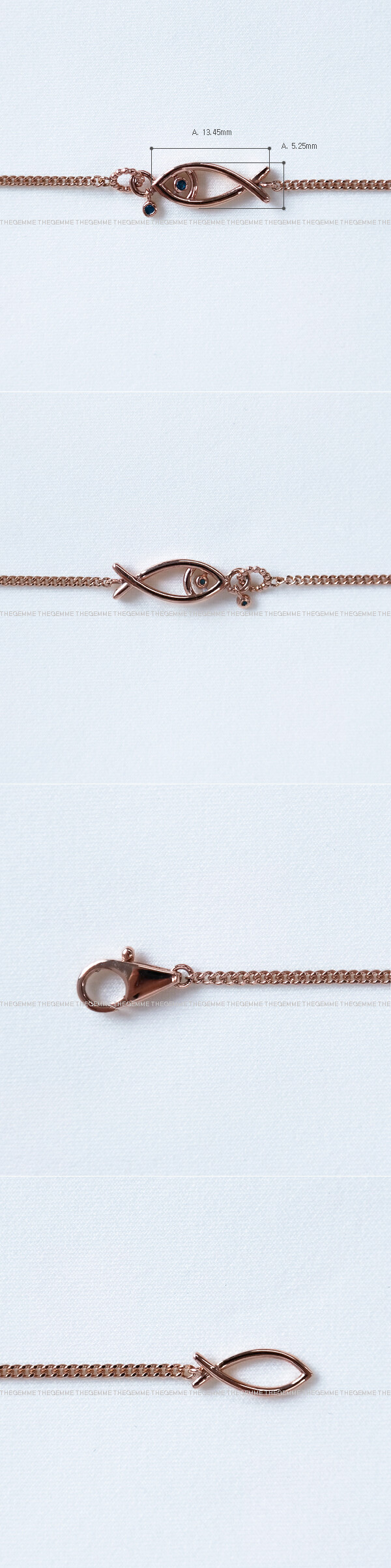 블루 다이아몬드가 세팅된 물고기 장식의 팔찌입니다. 전체적으로 연결 장식과 디테일이 오밀조밀해서 귀여운 느낌이 있어요 :) 옵션에서 발찌 사이즈로도 주문 가능합니다. 귀여운 이미지의 데일리 및 포인트 팔찌를 찾으시는 분들께 추천해 드릴게요. 💙