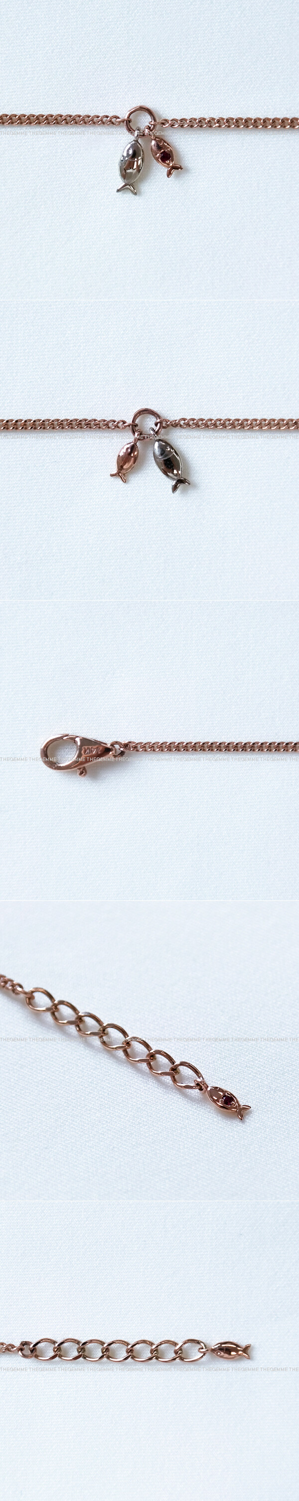 귀여운 물고기 두 마리가 포인트로 들어간 루비 발찌입니다. 사이즈가 약간 다른 물고기들이구요, 작은 물고기 중앙에는 루비가 세팅됩니다. 자세히 보시면 사이즈가 조금 큰 물고기 장식은 포인트 색상으로 들어가는 투톤 디자인이에요. (원톤으로 원하시는 경우에는 기본 골드 색상과 포인트 골드 색상을 동일하게 선택해 주시면 됩니다.) 옵션에서 팔찌 사이즈로도 선택 가능하니 이 부분도 참고해 주시구요, 오밀조밀 귀엽고 깜찍한 디자인으로 데일리 및 포인트 발찌로 추천해 드릴게요. 😁 * 다이아몬드 및 탄생석 세팅도 가능하니 상담을 원하시는 분은 네이버 톡톡 채팅으로 문의주세요. 💖