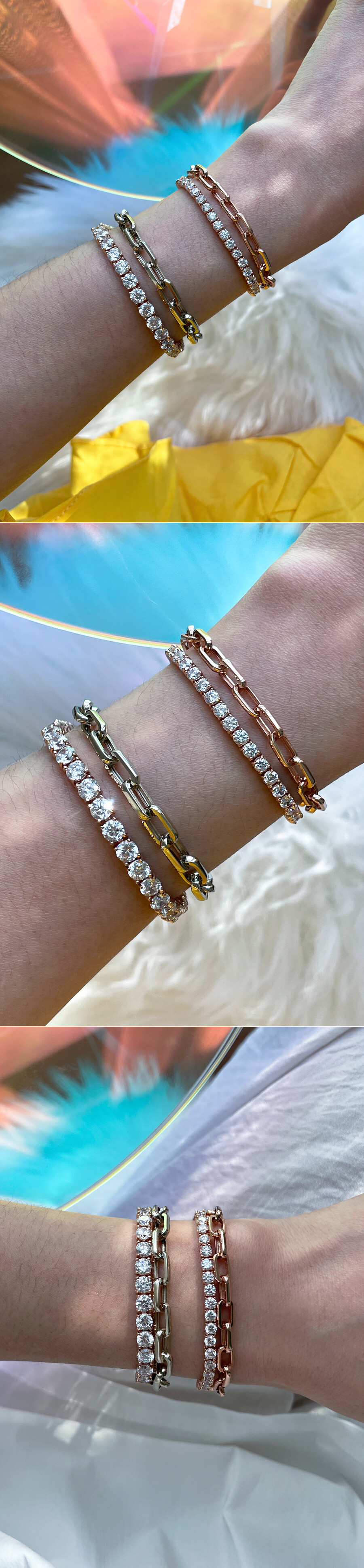 볼드 큐빅 테니스 두줄 팔찌 (2TYPE)