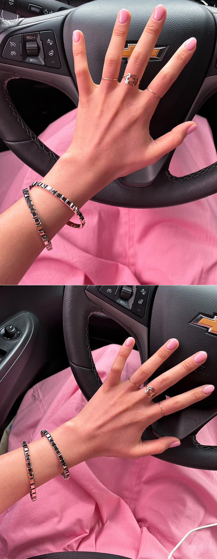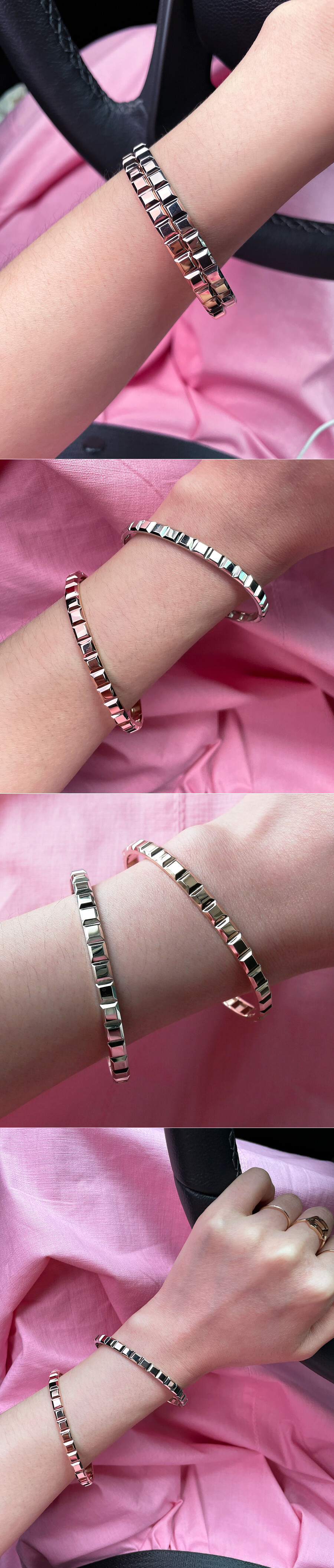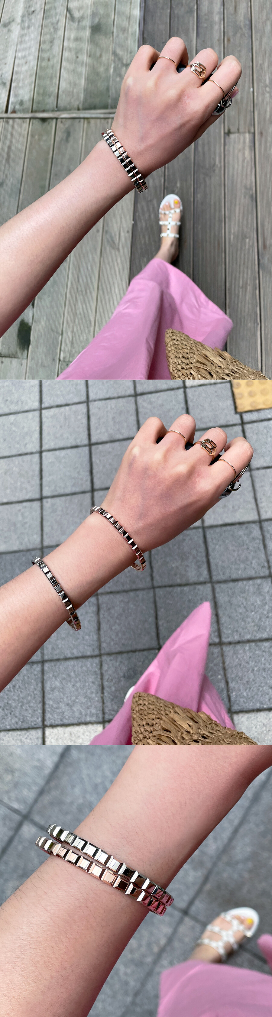 사각 디자인의 뱅글 팔찌입니다. 군더더기 없이 딱 떨어지는 스타일로 남녀노소 누구나 착용하실 수 있는 디자인이랍니다! 깔끔하고 세련된 디자인과 볼드한 중량감으로 포인트 팔찌 및 매일매일 착용하실 수 있는 데일리 팔찌로 추천해 드릴게요. ♥
