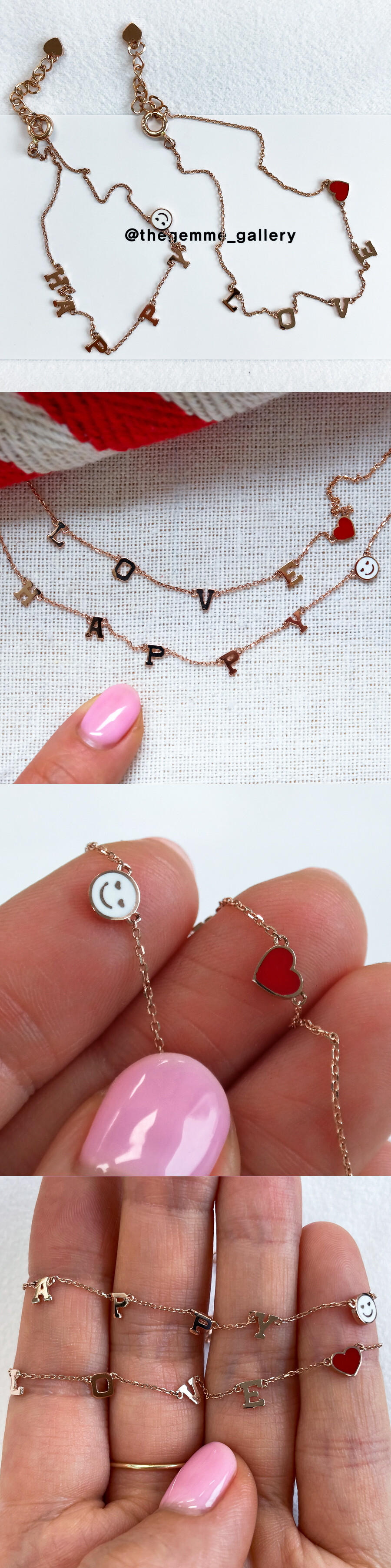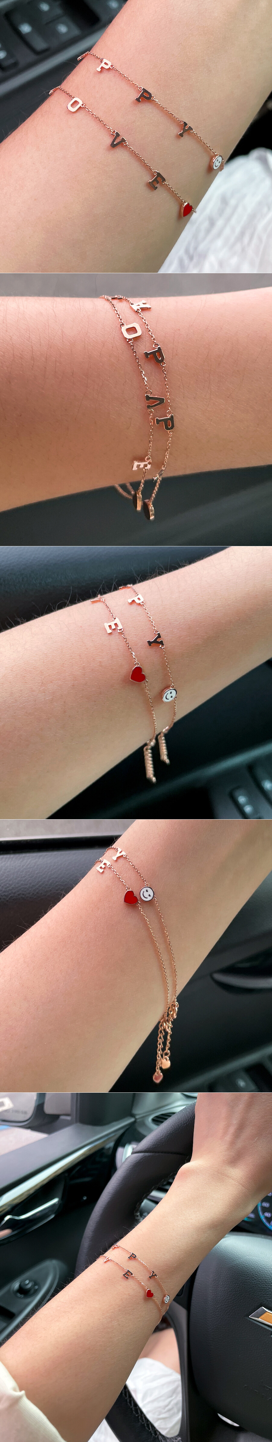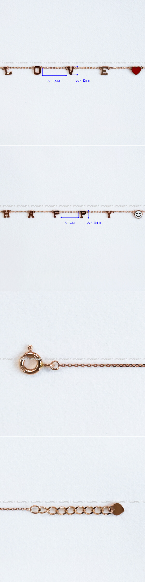 가볍고 플랫한 이니셜 팬던트 디자인의 팔찌입니다. 방사형 디자인으로 LOVE♥ 디자인과 HAPPY😊 디자인 두 가지 스타일로 나뉘며 하트 팬던트와 스마일 팬던트에는 골드의 표면 위로 컬러 에폭이 입혀지는 디자인이에요. 에폭 색상은 하트 (레드) , 스마일 (화이트) 입니다. 원하시는 경우 옵션에서 발찌로도 선택하셔서 주문하실 수 있으니 참고해 주시구요, 각각 귀엽고 사랑스러운 느낌으로 데일리 팔찌 및 발찌로 추천해 드릴게요. * 기본 설정가는 "LOVE♥" 디자인으로 되어있습니다. LOVE♥ 디자인과 HAPPY😊 디자인의 가격이 각각 다르므로 자세한 가격은 옵션에서 디자인 및 함량 & 사이즈를 선택하셔서 확인해 주세요.