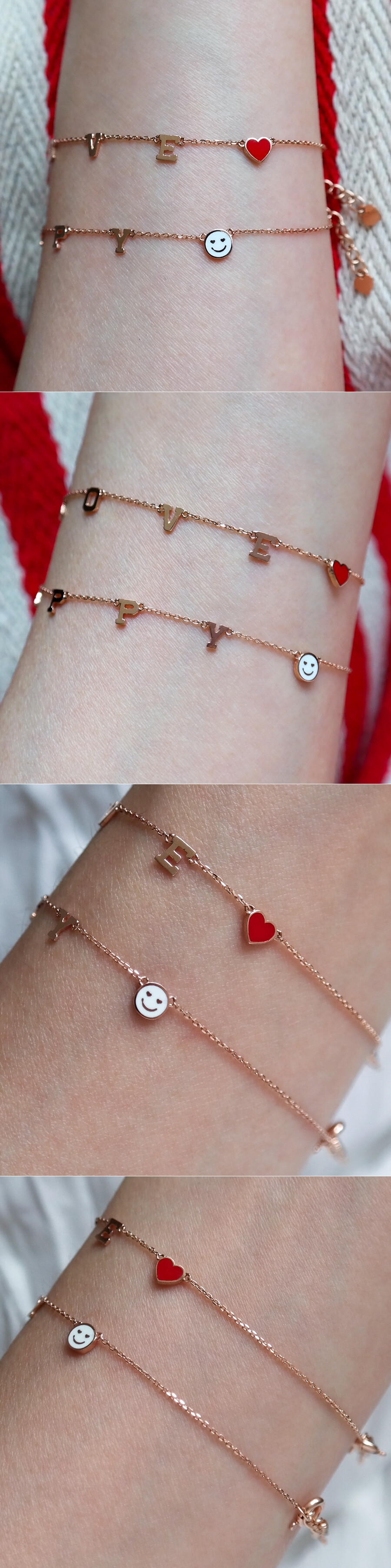 러브 하트 & 해피 스마일 이니셜 팔찌 (발찌가능)