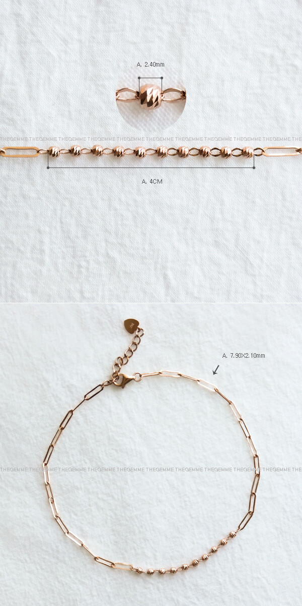 이미지상 샘플 발찌는 21CM 촬영 사진입니다. 이 제품은 주문하신 사이즈에 (+ 여유 고리 3CM) 가 포함되어 제작됩니다. * 예) 22CM 주문 시, + 3CM = 25CM까지 착용 가능합니다.