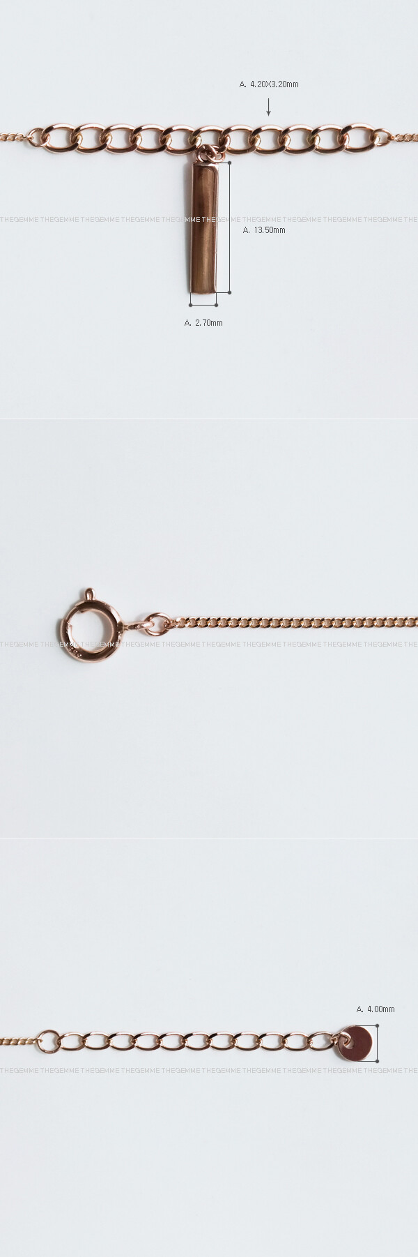 이미지상 샘플 팔찌는 17CM 촬영 사진입니다. 이 제품은 주문하신 사이즈에 (+ 여유 고리 3CM) 가 포함되어 제작됩니다. * 예) 17CM 주문 시, + 3CM = 20CM까지 착용 가능합니다.