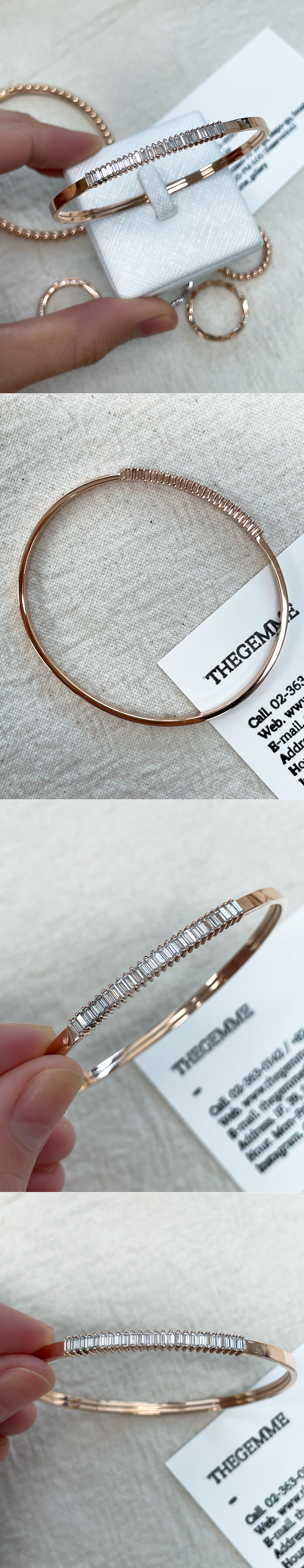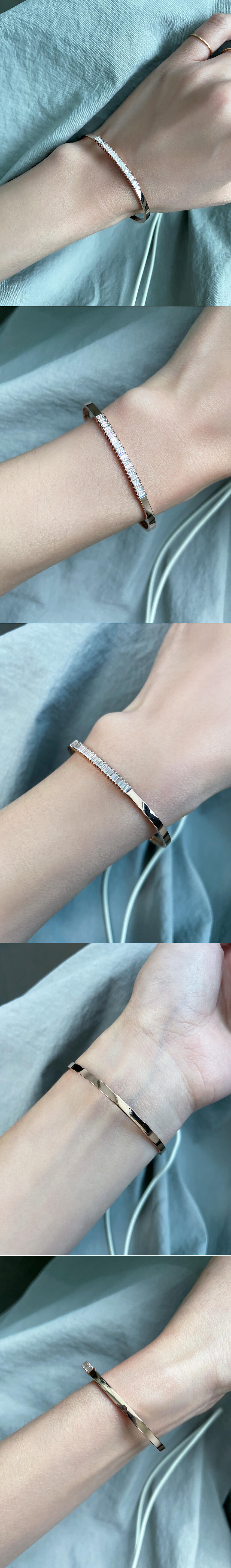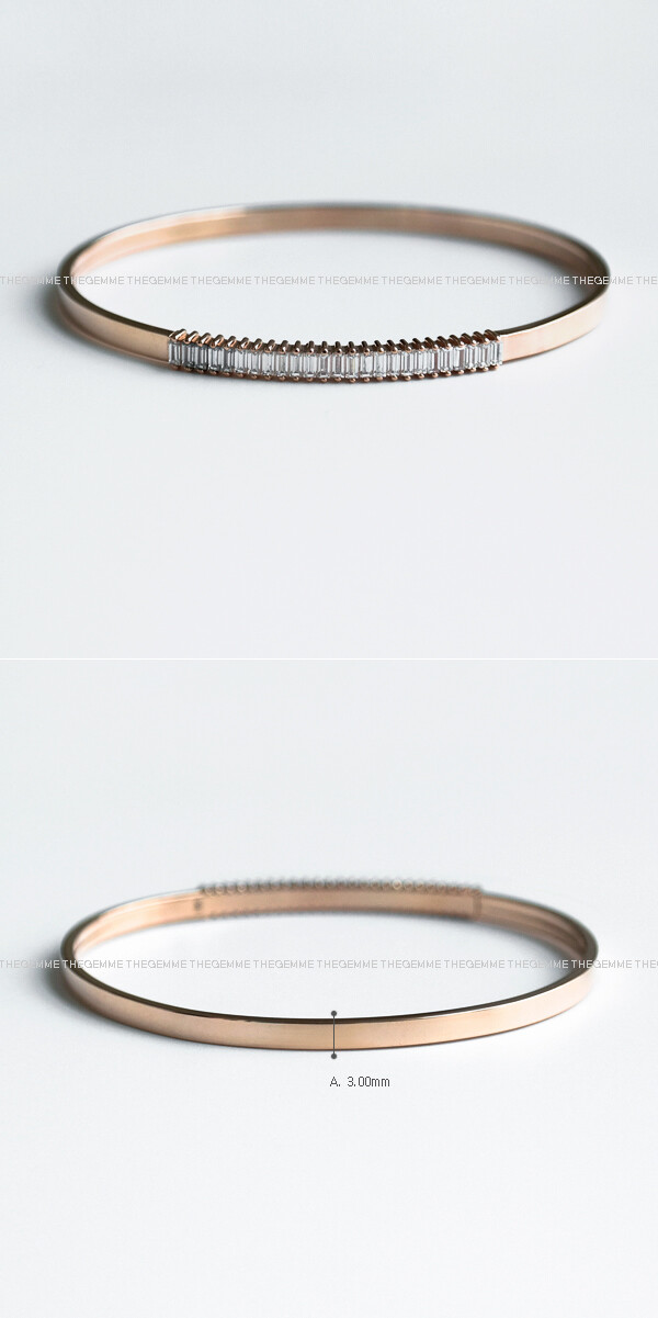 세련된 스타일의 뱅글 팔찌입니다. 플랫한 뱅글의 중앙에 바게트컷의 큐빅들이 촘촘히 세팅된 포인트 라인이 있어요. 🩷 움직일 때마다 반짝반짝~ 눈길을 끄는 아이랍니다. 전체적으로 깔끔한 라인의 뱅글로 어떤 코디에도 다 잘 어울려요 :) 다양한 코디를 연출하시고 싶으신 분들에게 데일리 및 포인트 팔찌로 추천해 드릴게요! 🙌🏼