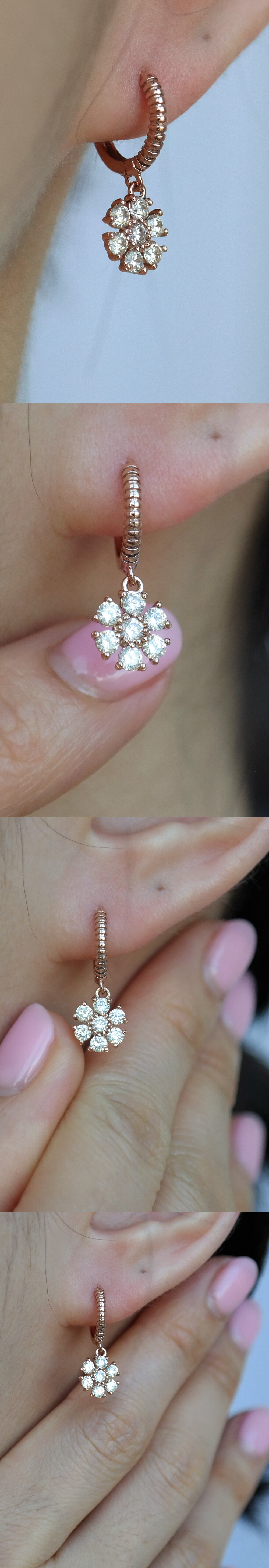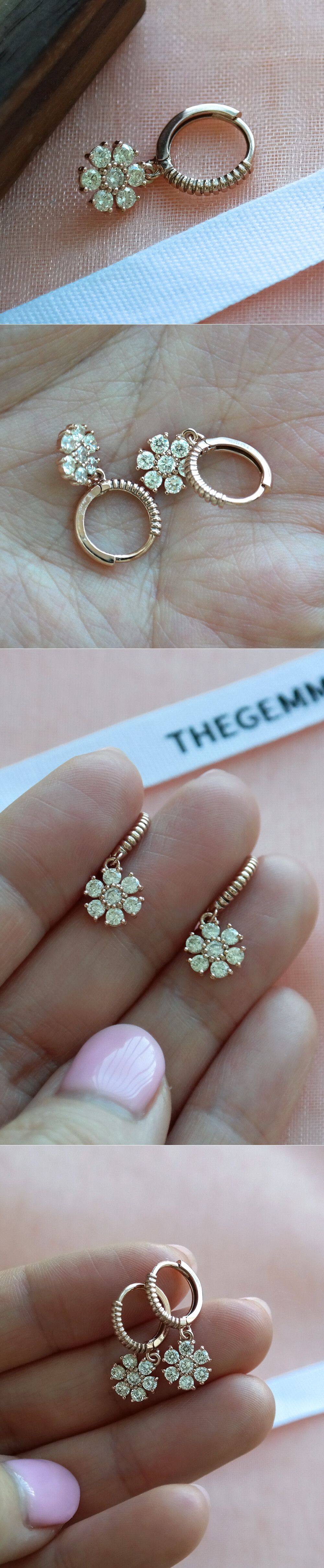 프리지아 옐로우 꽃 플라워 큐빅 링 귀걸이