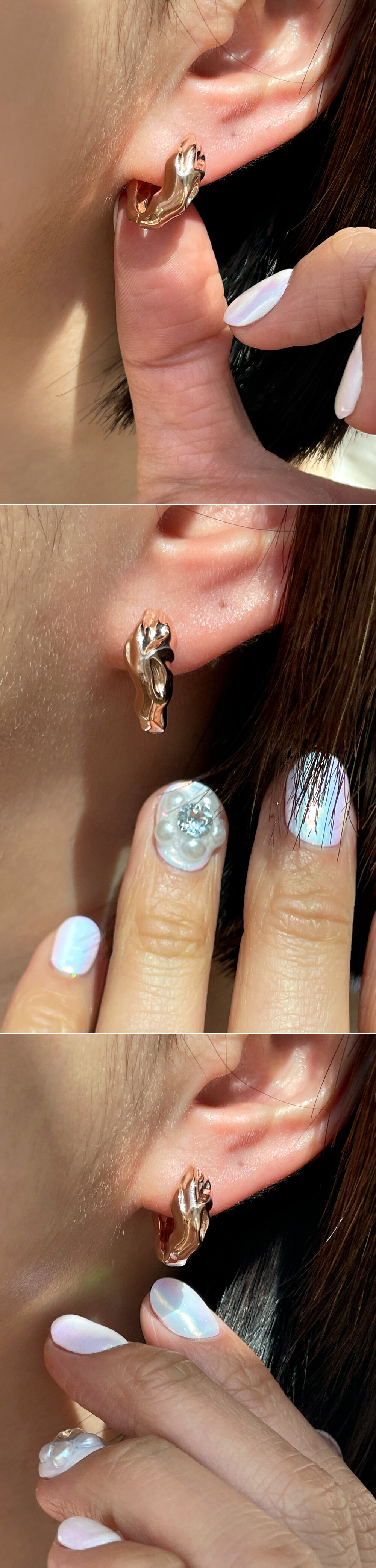 ― 귀걸이 및 피어싱 제품의 경우, 알러지 방지 및 공정 과정 등의 이유로 골드 색상에 관계없이 침부분 및 너트는 옐로우 골드로 출고될 수 있습니다.