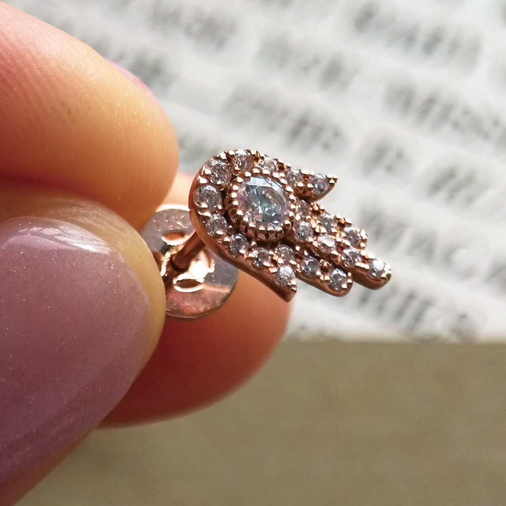 손대는 일마다 성공을 거두는 사람을 의미하는 미다스의 손을 모티브로 제작된 손 모양의 스터드 귀걸이입니다. ✋🏼 마이다스의 손, 마이더스의 손이라고 불리는 .... 너무 유명한 손이죠? 💚 고급스러운 정교함과 섬세한 디테일을 자랑하는 귀걸이로 커다란 의미까지 더해져 상징적이면서 의미 있는 귀걸이로 착용하시기 정말 좋을 것 같아요. 😃 손 모티브 전체에 메인 큐빅과 다양한 사이즈의 서브 스톤들이 세팅되어서 반짝반짝 ~ 빛나는 아이랍니다. 소망과 의미를 담아 착용하실 수 있는 포인트 귀걸이로 추천해 드릴게요! 🙌🏼