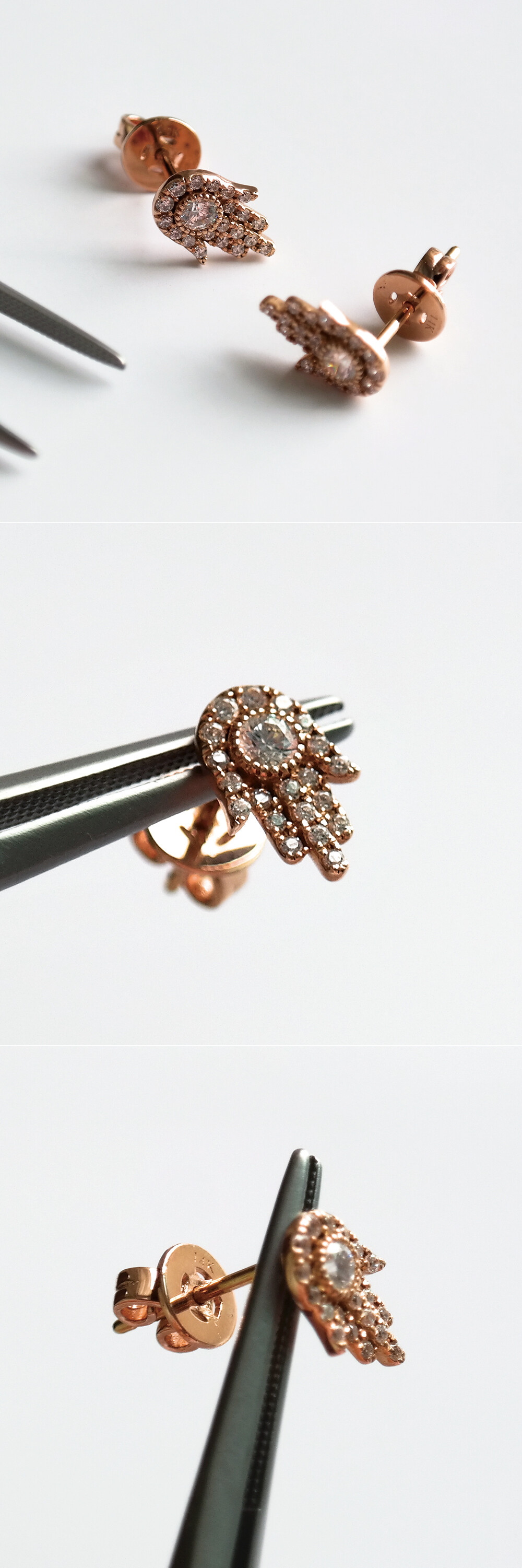 ― 귀걸이 및 피어싱 제품의 경우, 알러지 방지 및 공정 과정 등의 이유로 골드 색상에 관계없이 침부분 및 너트는 옐로우 골드로 출고될 수 있습니다.