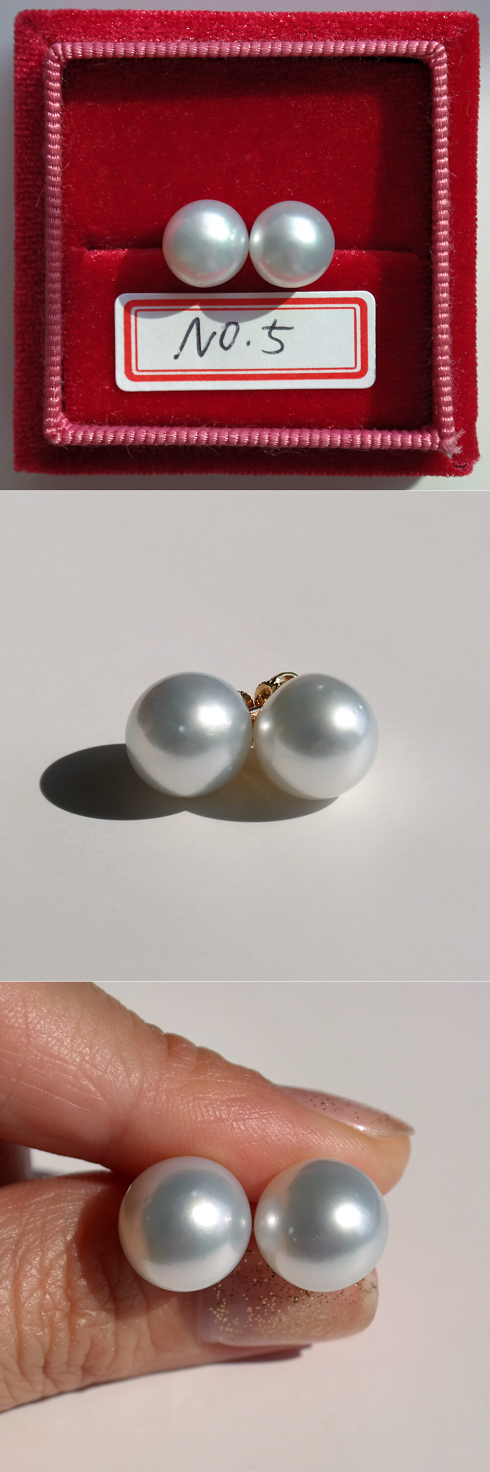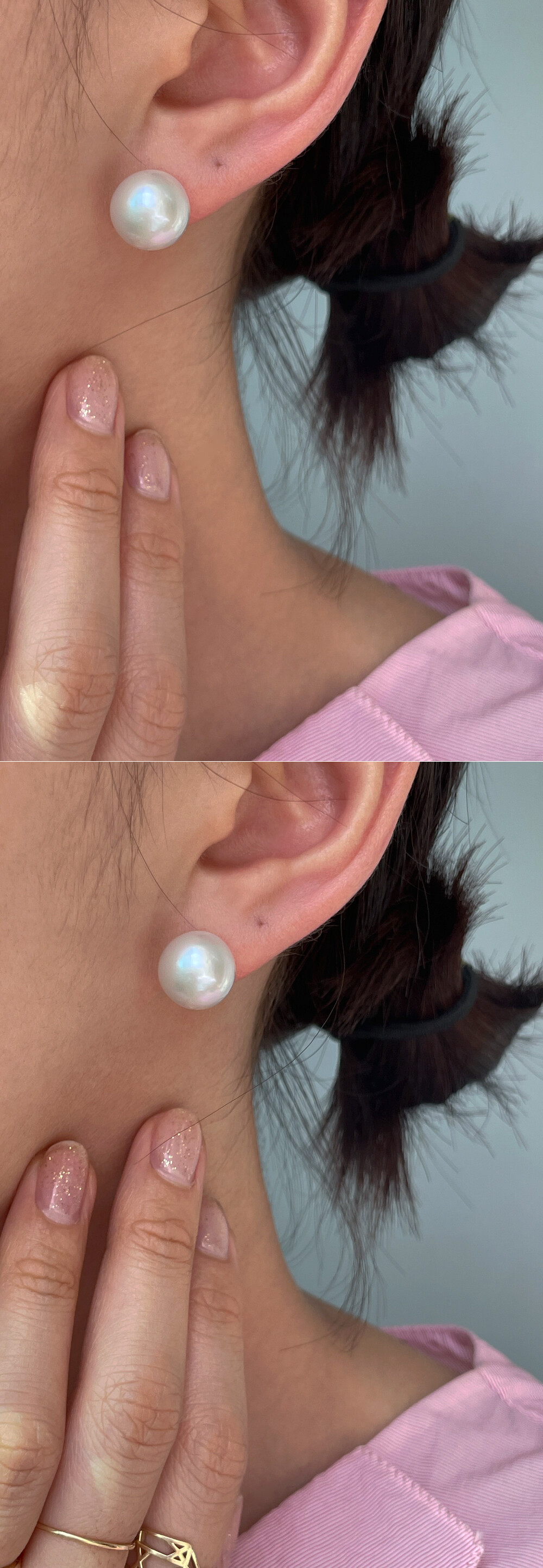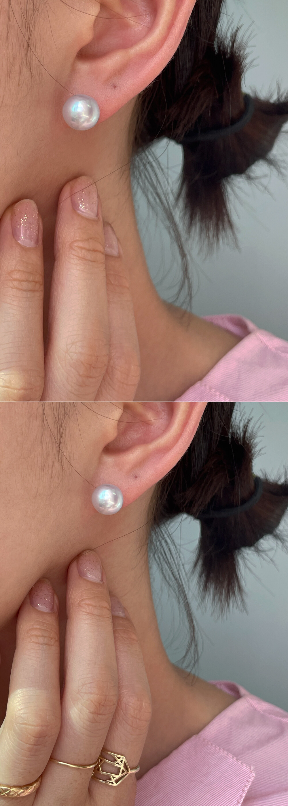 화이트~그레이 바디에 은은한 실버~핑크 오버톤이 맴도는 남양진주를 세팅한 귀걸이입니다. 😃 불퉁불퉁, 모양이 불균형한 바로크 타입의 해수진주로 총 7벌이 제작되었어요. 모두 14K로 제작된 아이들이구요, 세트마다 진주의 컨디션과 골드 색상, 사이즈가 약간씩 달라서 영상과 이미지를 각각 올려드렸으니 이 부분 각각 참고해 주시기 바랍니다! 요 아이들은 바로크 진주임에도 불구하고 최대한 구형에 가까운 아이들로 엄선하여 제작한 아이들이에요. 또, 모두 9.5mm 이상이라 사이즈가 커서 네이커나 광택 등 품질면에서 우수하답니다 :) 차분하고 고급스러운 이미지를 연출하시고 싶으신 분들에게 추천해 드릴게요. 💖 * 진주의 특성상 완벽한 구형은 아니고 약간의 굴곡이 있으며, 진주 표면에 진주가 자라면서 생긴 숨구멍 같은 작은 구멍들과 울퉁불퉁한 외면이 있을 수 있으나 자연적인 진주의 특성입니다.