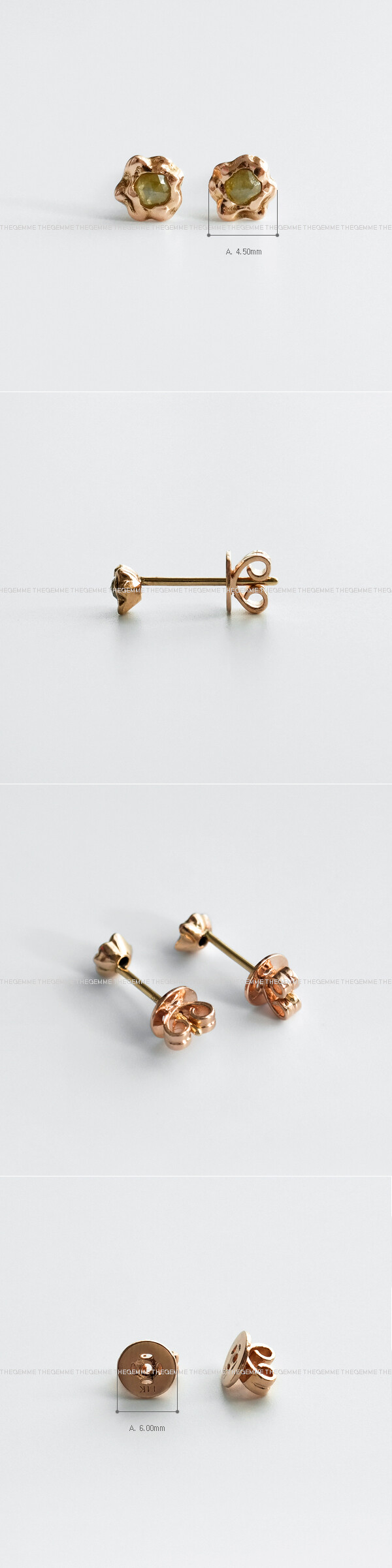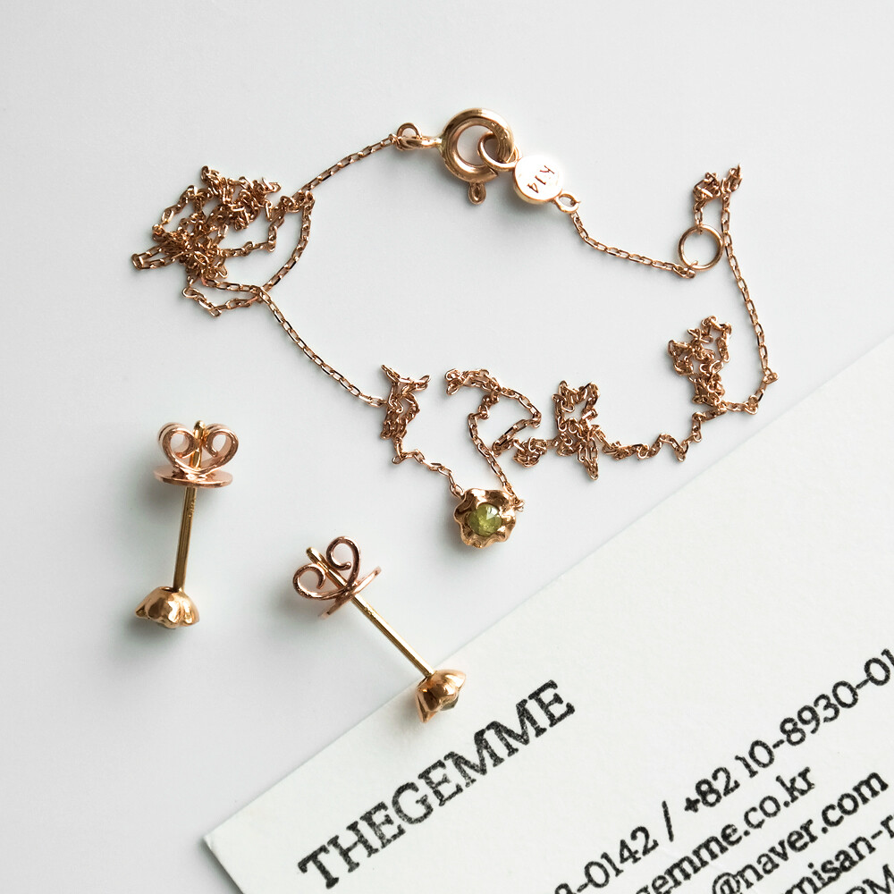 ― 귀걸이 및 피어싱 제품의 경우, 알러지 방지 및 공정 과정 등의 이유로 골드 색상에 관계없이 침부분 및 너트는 옐로우 골드로 출고될 수 있습니다.