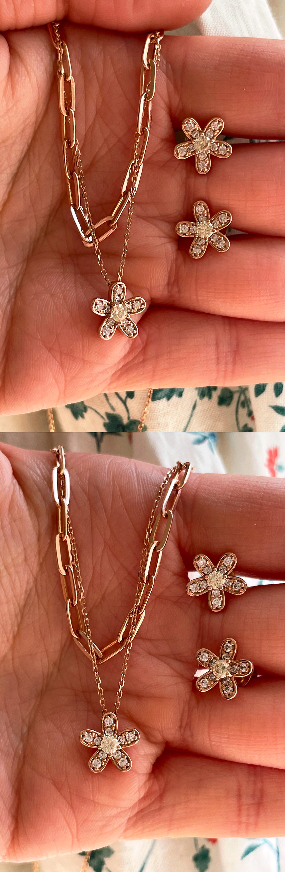 사랑스러운 플라워 장식의 스터드 귀걸이입니다. 🌼💛 볼륨감이 있으면서 디테일한 디자인으로 고급스러운 느낌이 가득한 아이에요. 전체 큐빅이 세팅된 디자인이구요, 플라워 중앙에 세팅된 밝은 옐로우 빛깔의 스톤은 라이트 옐로우 큐빅입니다. (옵션에서 전체 화이트(투명) 큐빅으로 변경 가능합니다.) 사랑스럽고 고급스러운 디자인의 귀걸이를 찾으시는 분들께 포인트 귀걸이로 추천해 드릴게요. 😉💖