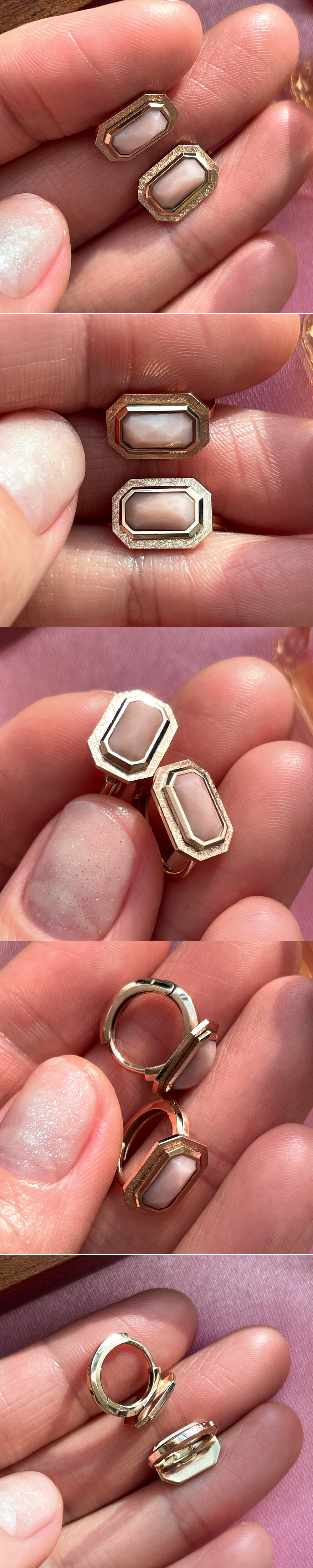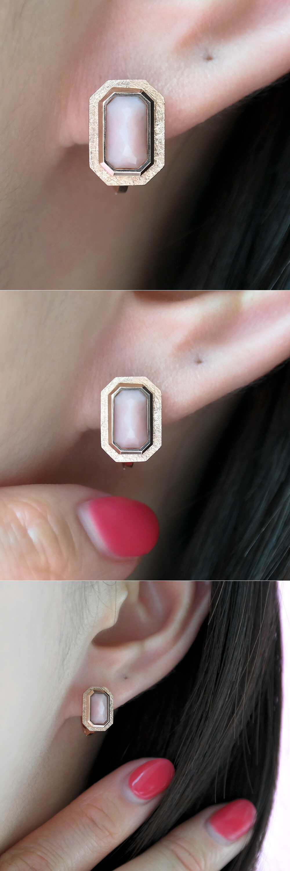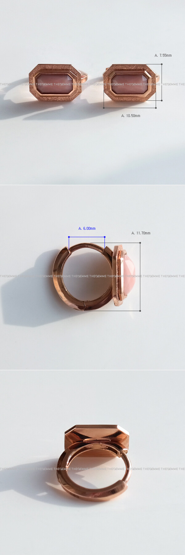 반짝반짝~ ✨ 사랑스럽고 러블리한 컬러를 가진 핑크 오팔이 세팅된 링 귀걸이입니다. 💍 귀한 사각 로즈컷의 핑크 오팔이 메인으로 세팅된 포인트 귀걸이로 엣지있고 세련된 느낌을 주는 아이에요 :) 깔끔한 베즐 세팅으로 제작되었구요, 베즐 부분에 샌딩된 무광 포인트가 들어가 있어서 고급스러운 느낌이 한층 더해졌어요. 원터치 스타일의 링 귀걸이라서 탈착도 편안하답니다. 세련미 넘치는 디자인으로 멋스러운 느낌의 데일리 귀걸이 및 포인트 귀걸이로 추천해 드릴게요! 💖