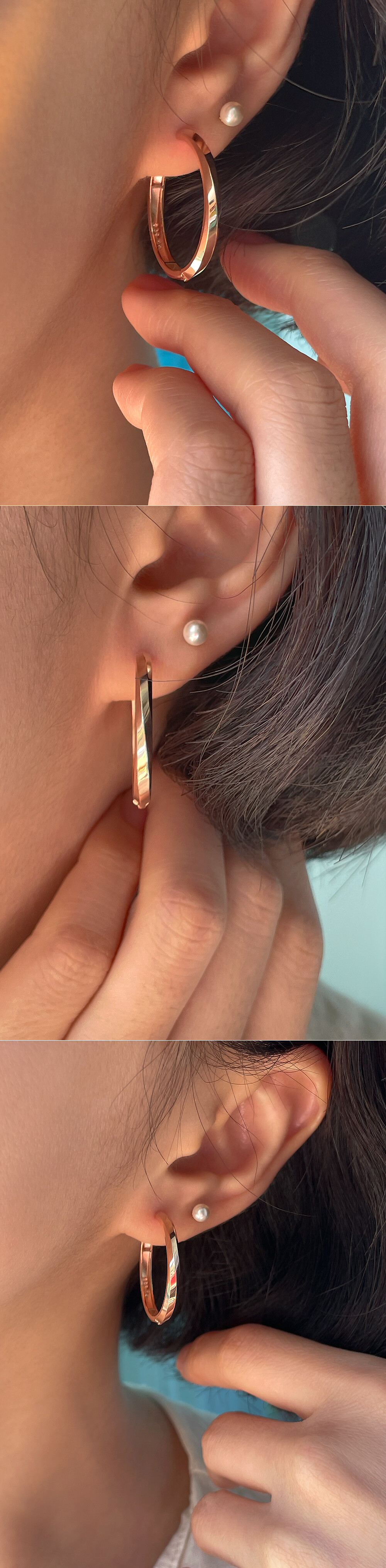 트위스트 디자인 링 귀걸이입니다. 약 2.5CM 지름의 오버 사이즈로 눈에 튀는 디자인을 선호하시는 분들께 포인트 귀걸이로 추천해 드릴게요. ❤️