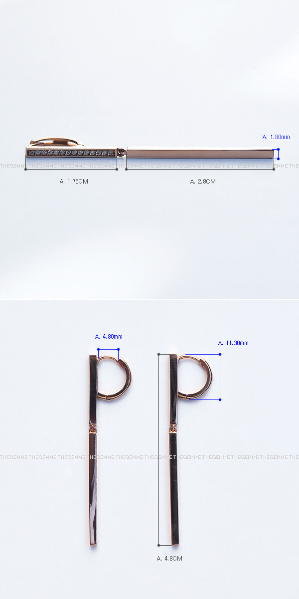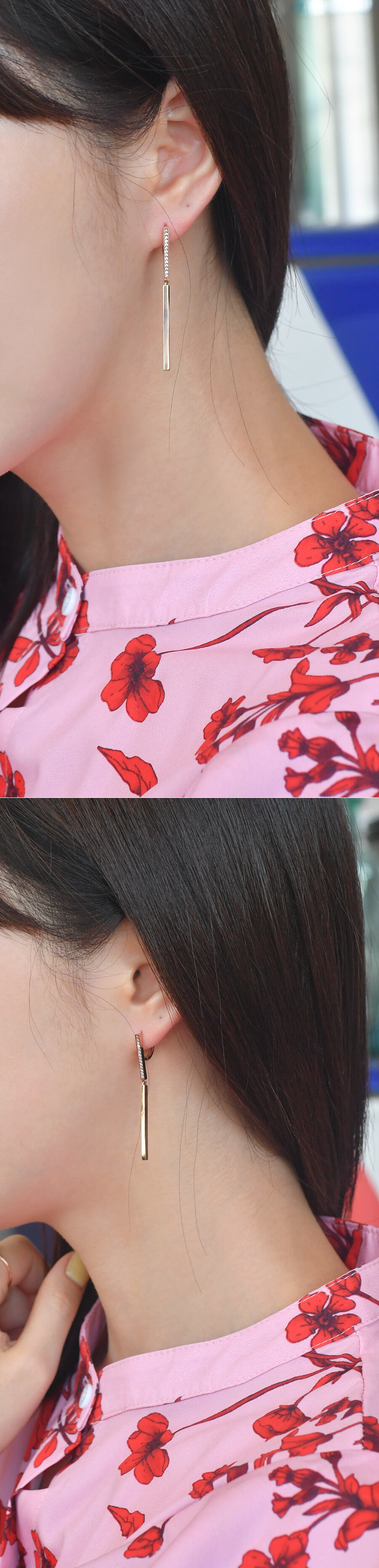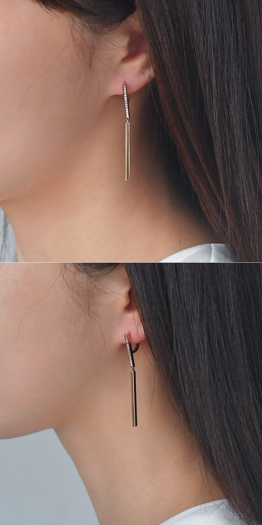 볼드한 스틱 라인의 원터치 귀걸이입니다. 전체 길이 약 5CM 길이감의 롱 귀걸이로, 군더더기 없이 깔끔하게 떨어지는 디자인입니다. 단정하고 세련된 느낌의 포인트 귀걸이를 찾으시는 분들께 추천해 드릴게요 :)