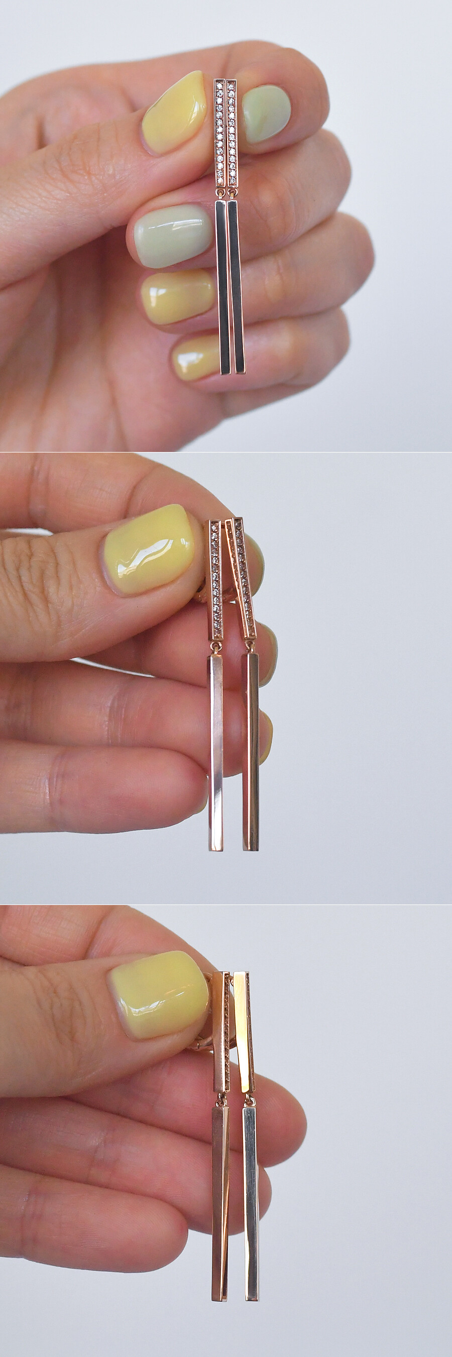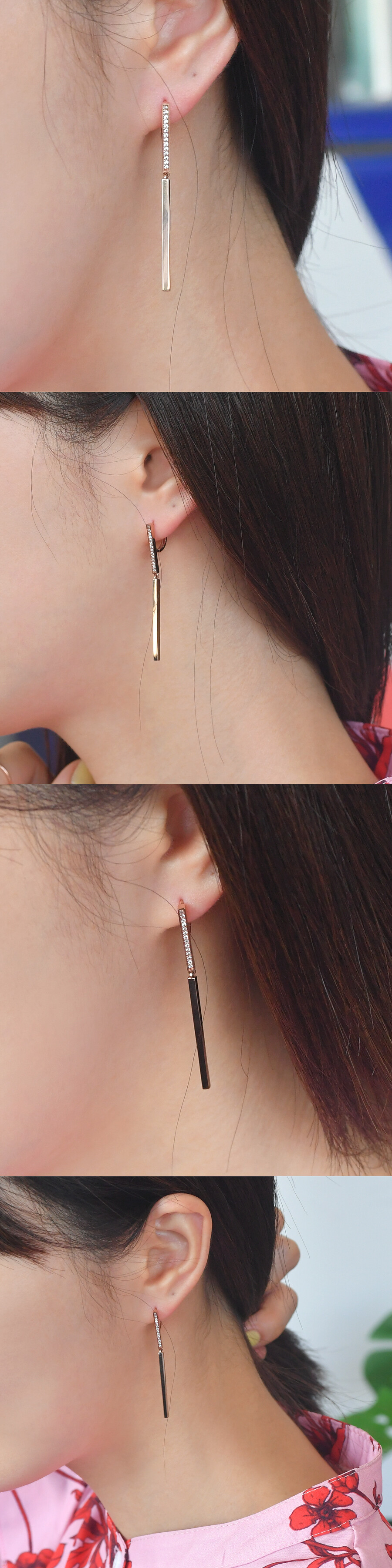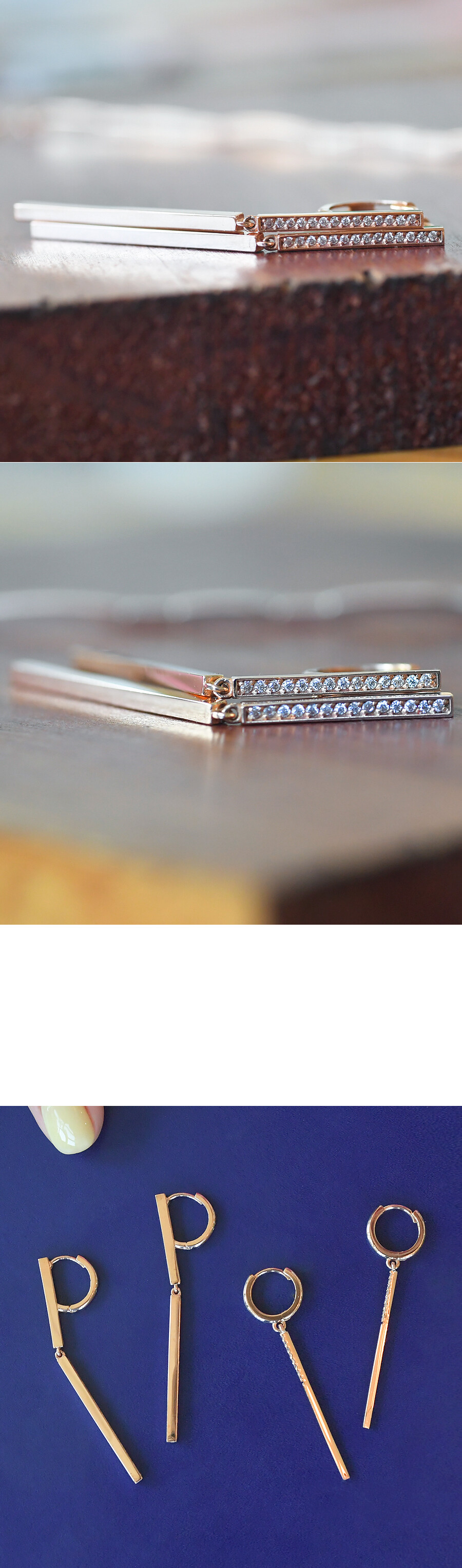 볼드한 스틱 라인의 원터치 귀걸이입니다. 전체 길이 약 5CM 길이감의 롱 귀걸이로, 군더더기 없이 깔끔하게 떨어지는 디자인입니다. 단정하고 세련된 느낌의 포인트 귀걸이를 찾으시는 분들께 추천해 드릴게요 :)