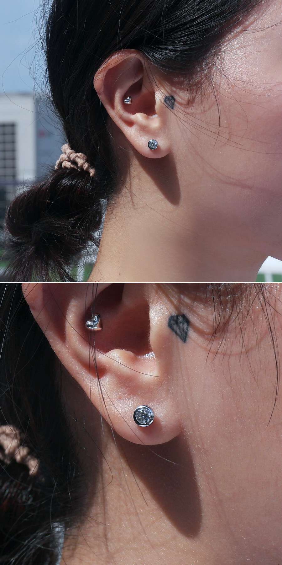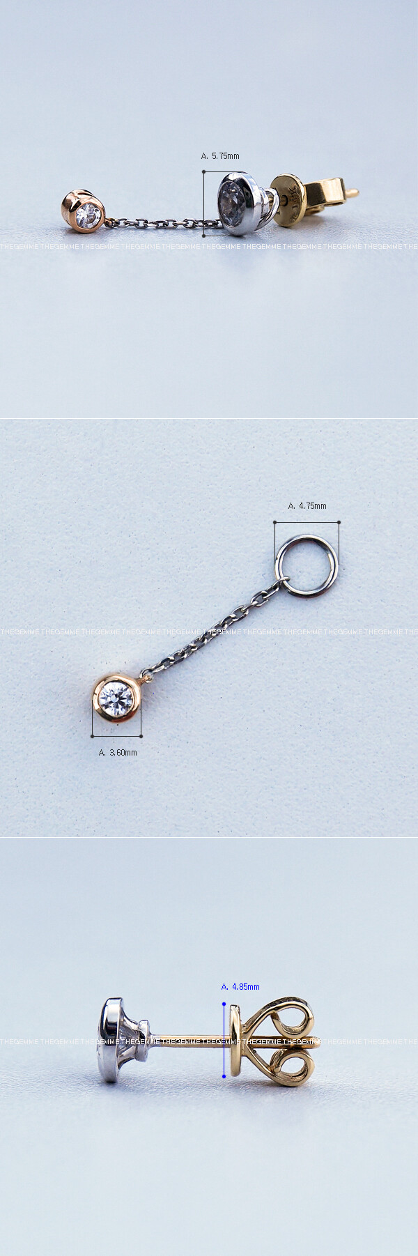 ― 귀걸이 및 피어싱 제품의 경우, 알러지 방지 및 공정 과정 등의 이유로 골드 색상에 관계없이 침부분 및 너트는 옐로우 골드로 출고될 수 있습니다.