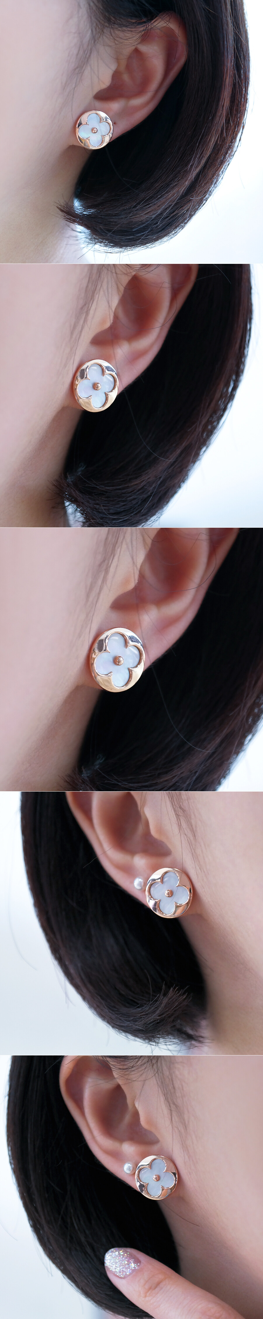 화이트 자개 크로버 귀걸이 (3TYPE)