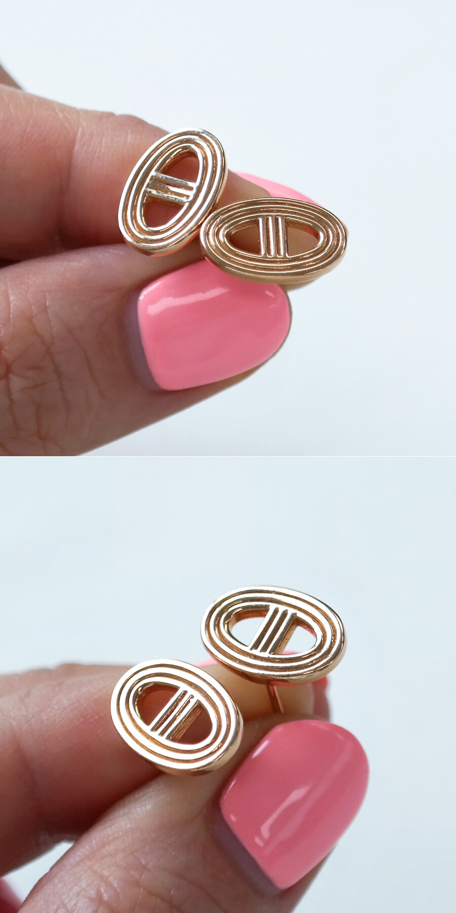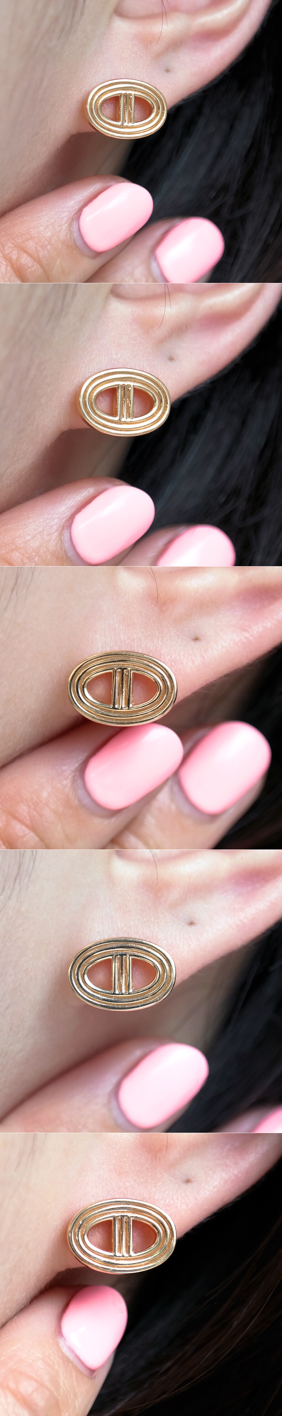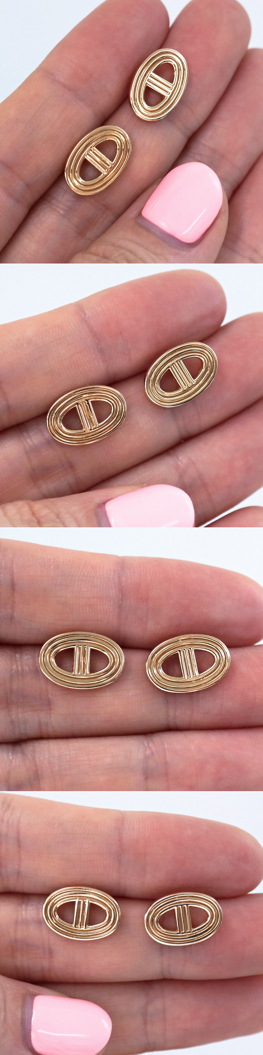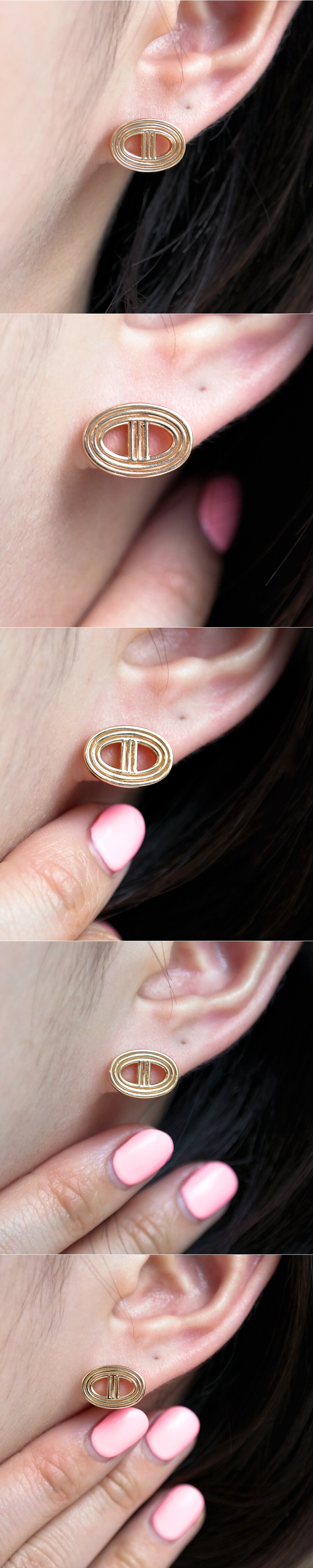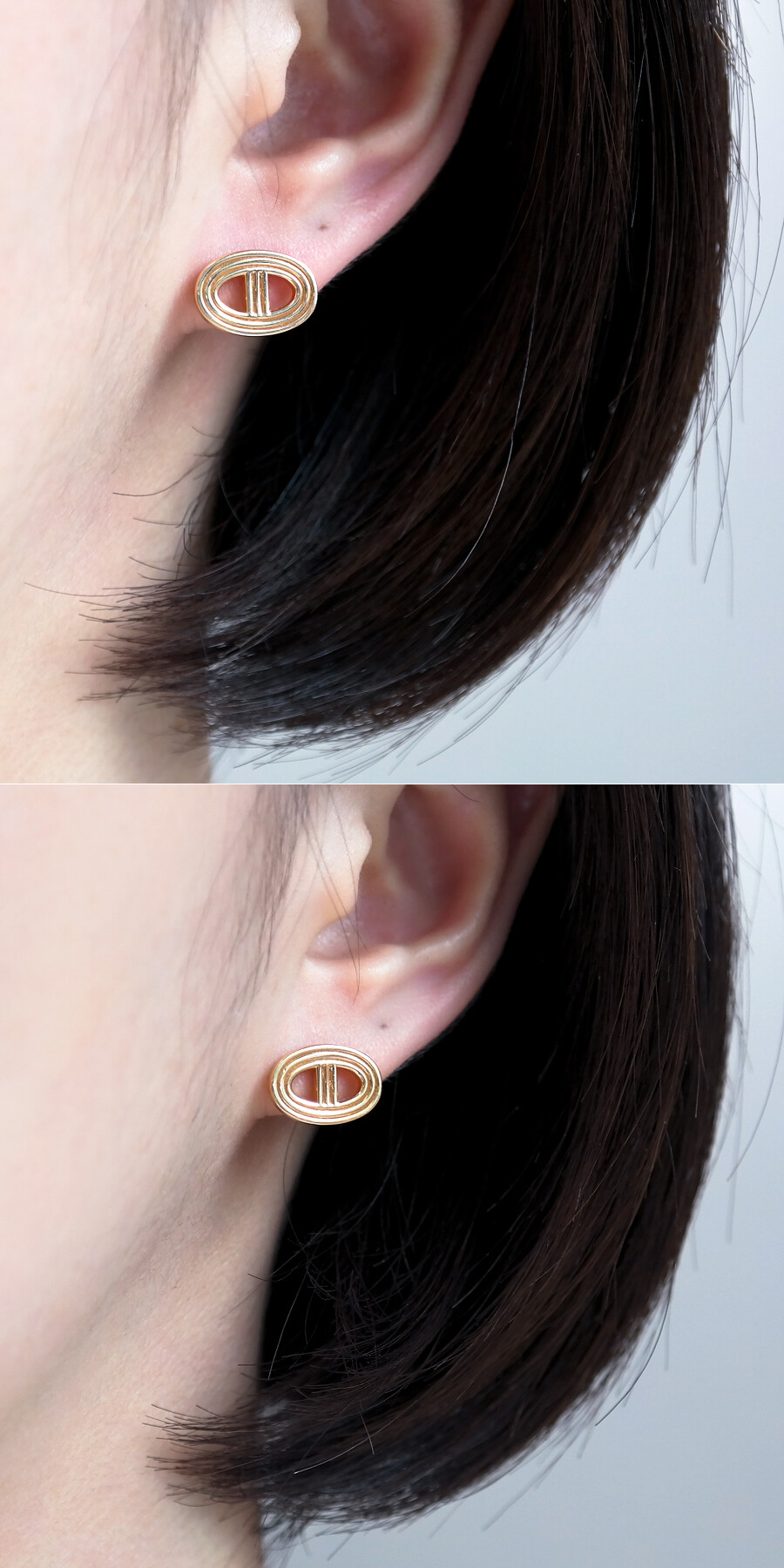 플랫하고 유니크한 오벌 디자인의 스터드 귀걸이입니다. 도톰하고 볼드한 스타일의 귀걸이로 포인트 귀걸이로 착용하시기 좋아요. 😍❤️