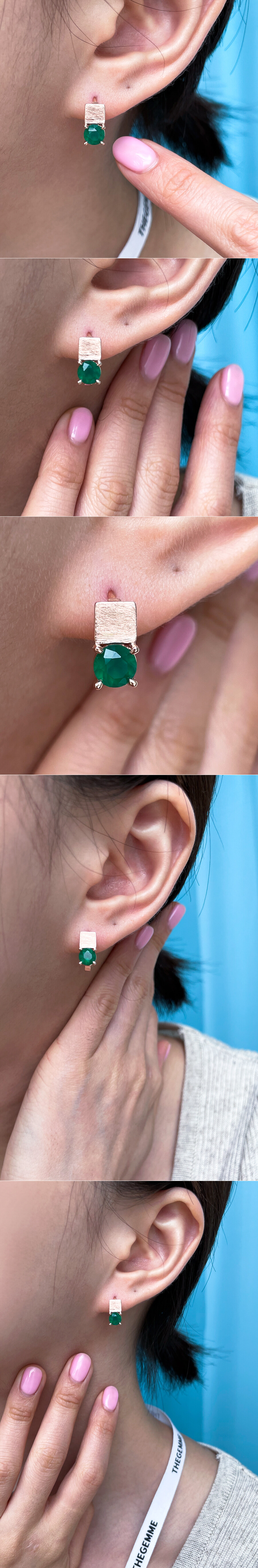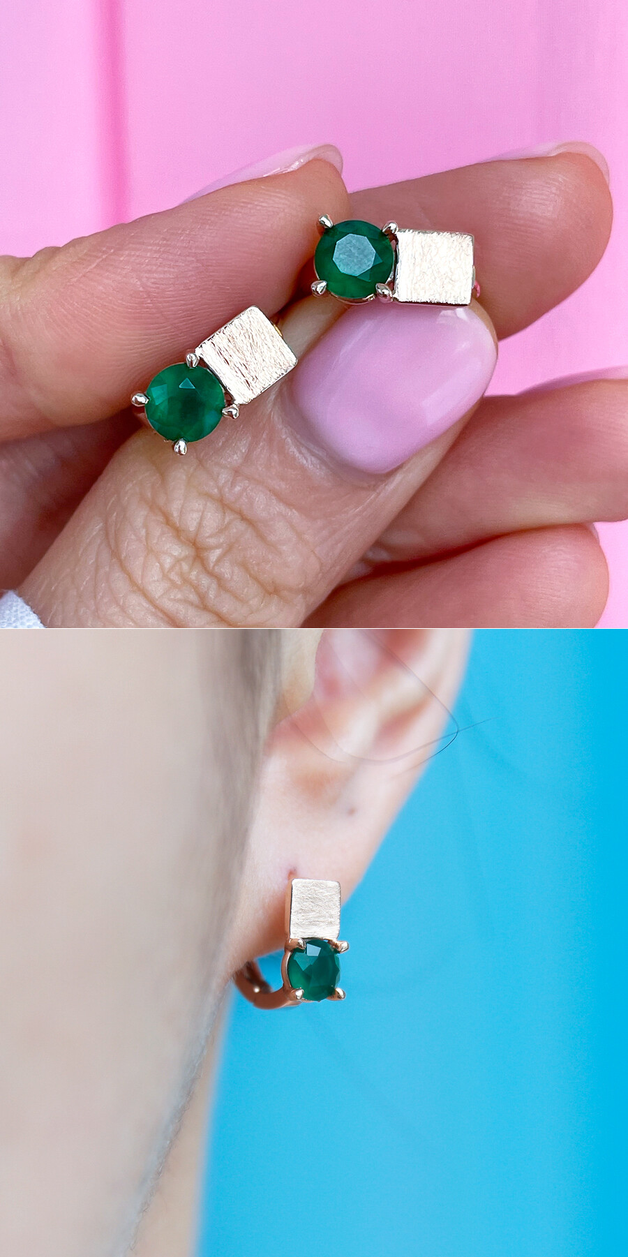 앤틱 사각 (큐빅 & 그린 오닉스) 링 귀걸이