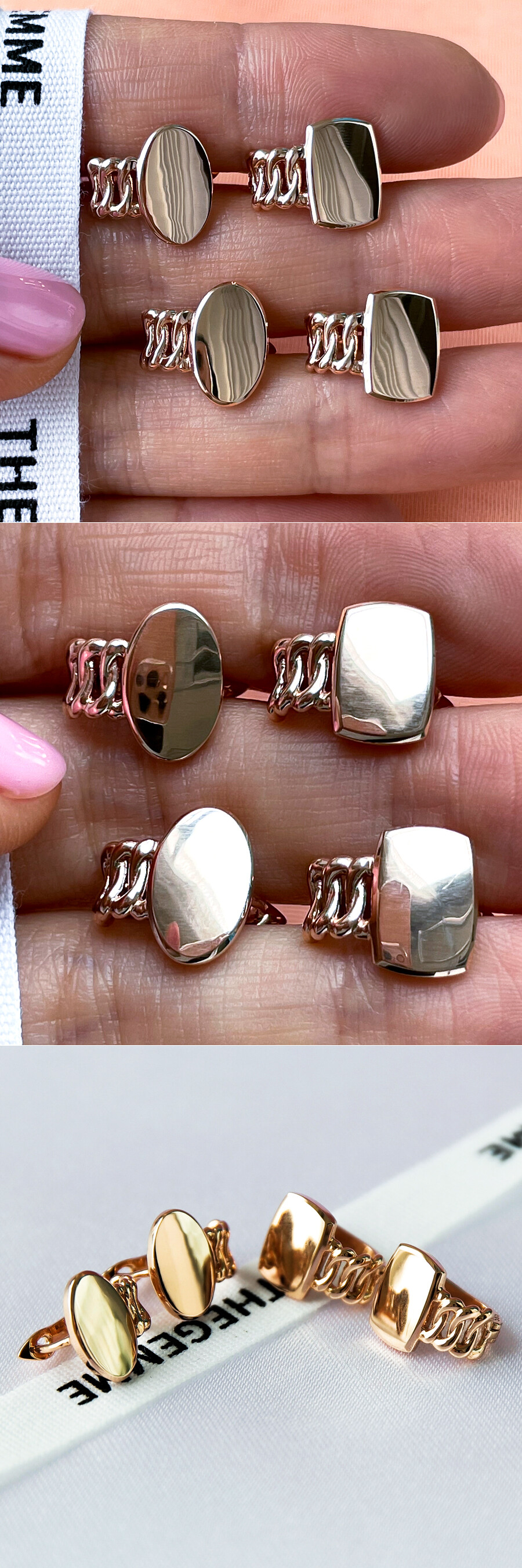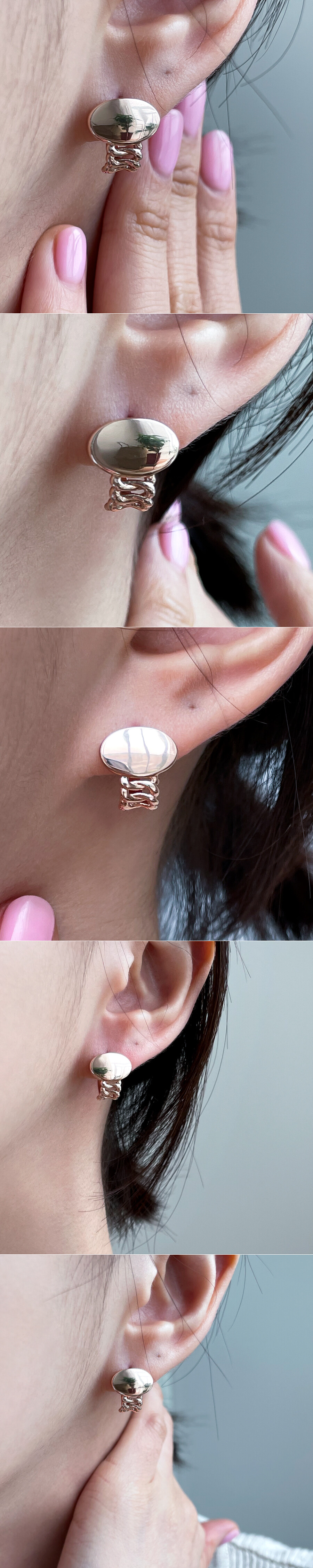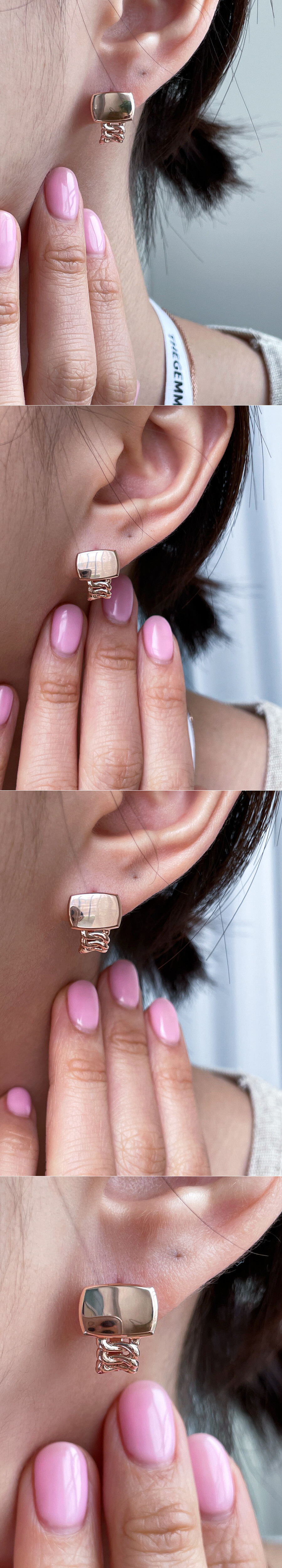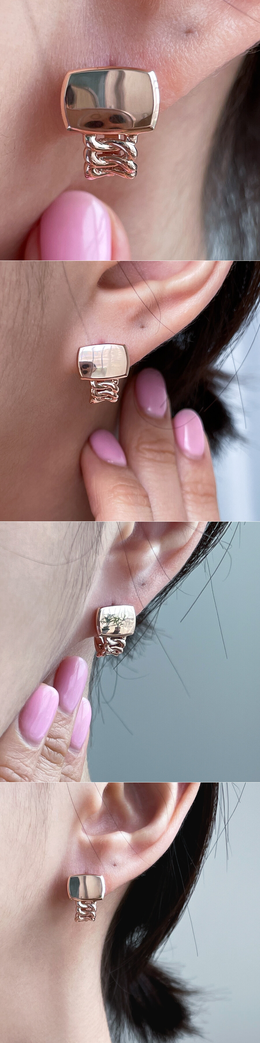 버튼 디자인의 링 귀걸이입니다. 원형 & 사각 두 가지 디자인이구요, 체인 디자인과 함께 레이어드 되어서 밋밋하지 않고 유니크한 느낌이 있어요. 원터치 스타일로 탈착도 편안하게 하실 수 있답니다! 어디에나 잘 어울리는 디자인으로 데일리 및 포인트 귀걸이로 추천해 드릴게요.