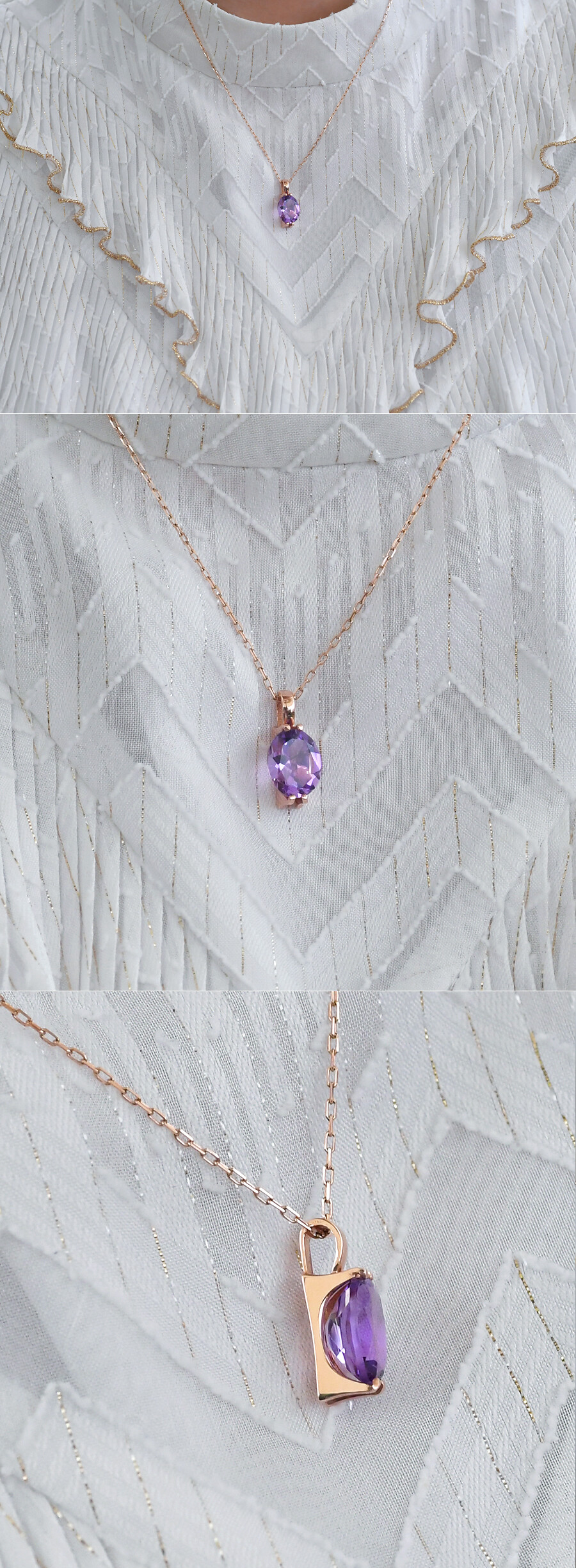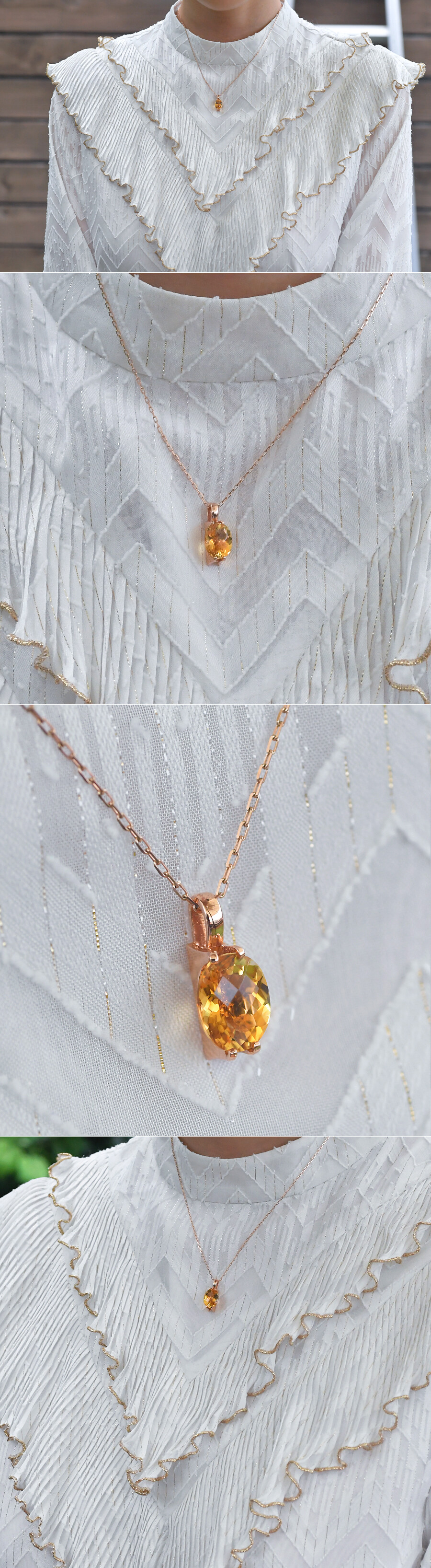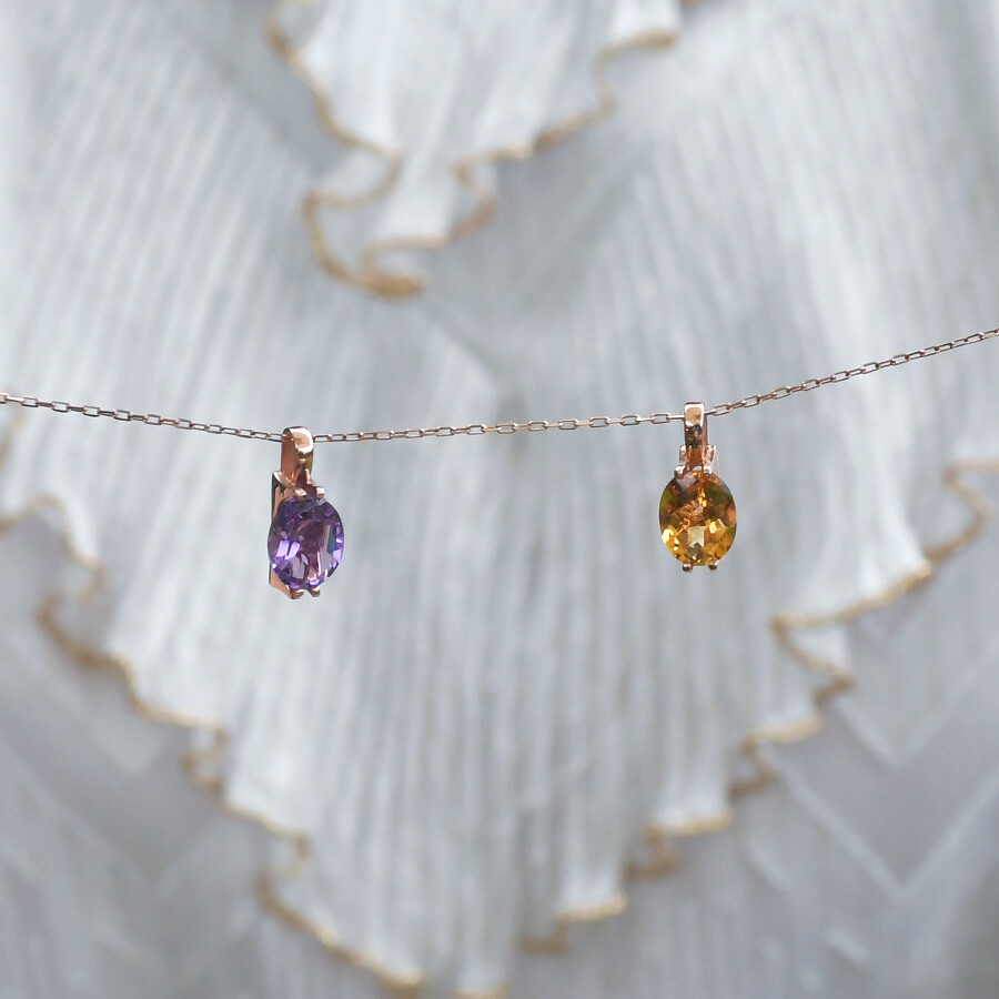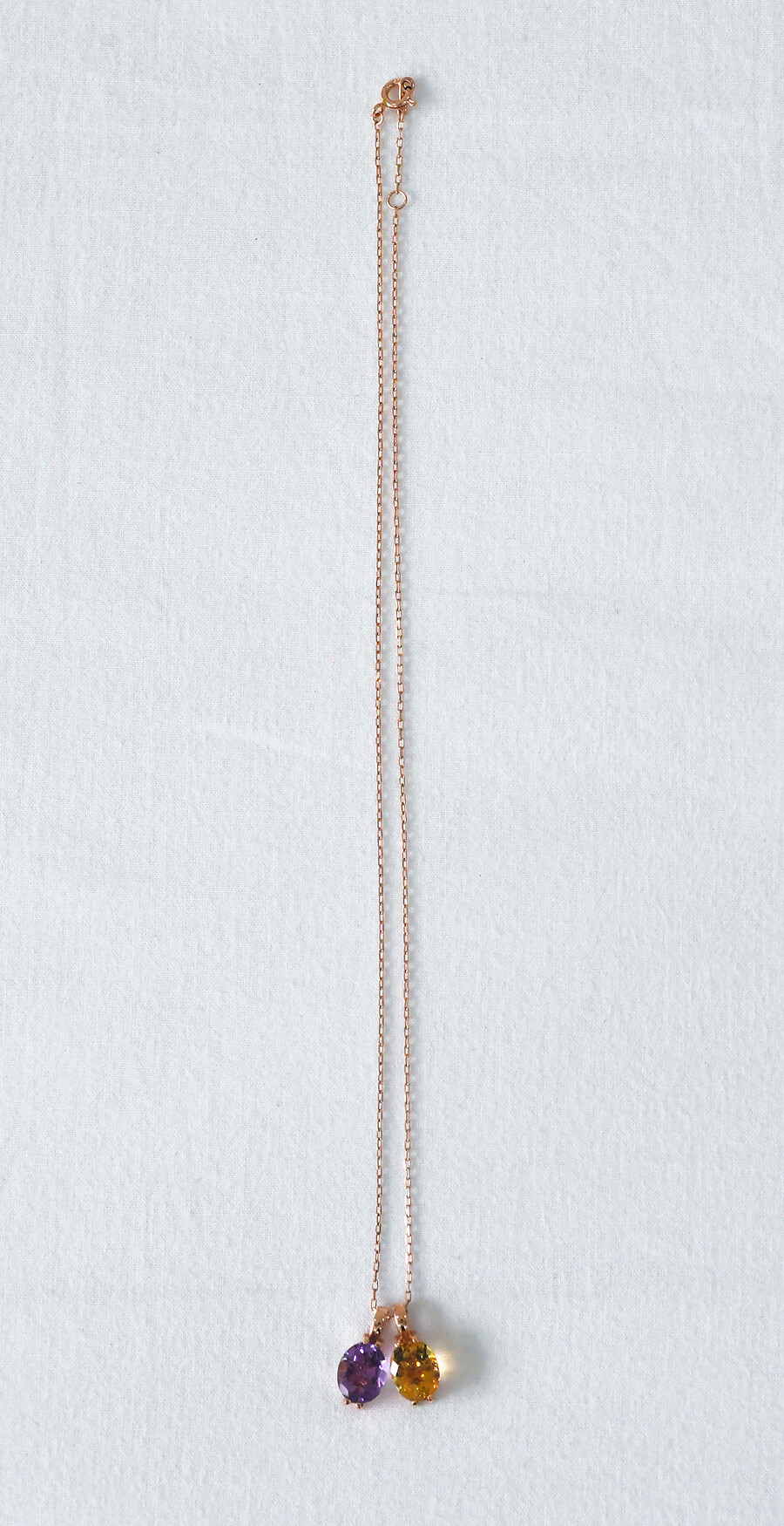 사이즈가 비교적 큰 10X8 사이즈의 골든 시트린과 밝은 컬러의 자수정을 세팅한 자체 제작 목걸이 팬던트입니다. 골든 시트린은 열처리를 통해서 고급스럽고 아름다운 황금빛을 가지게 된 엑스트라 골든 시트린이며, 자수정은 밝고 투명한 스톤으로 천연의 순수함을 머금고 있는 아이랍니다. 둘 다 모두 최상급 퀄리티를 가지고 있어요. 자세히 보시면 두 가지 스톤의 차이점이 있는데, 자수정은 브릴리언트컷 스톤이며, 골든 시트린은 체커컷 스톤입니다. 스톤의 커팅 모양은 하단의 이미지에서 자세히 확인해 주시기 바랍니다 :) 스톤의 사이즈가 크기 때문에 옆면에서 보았을 때는 프롱이 높은 편에 속합니다. 다만, 스톤을 많이 가리지 않은 디자인이라 빛이 투과할 수 있는 공간이 많다 보니 아이들이 더욱더 영롱하게 빛을 뿜어낸다는 특징이 있어요. 팬던트 고리의 내경이 넉넉해서 웬만한 체인들과 호환하여 착용하실 수 있는 아이랍니다! (굵은 체인의 경우에는, 페이지 가장 하단의 상세 이미지를 통해 잠금 장식 사이즈를 체크해 주세요.) 중요한 날, 우아한 매력으로 장식할 포인트 팬던트로 추천해 드립니다. * 옵션에서 함께 레이어드 된 체인 추가 가능합니다.