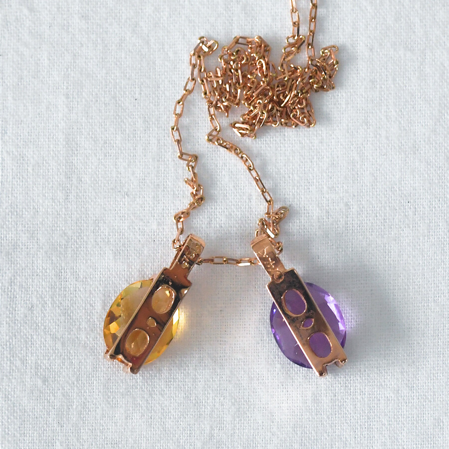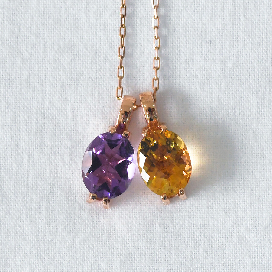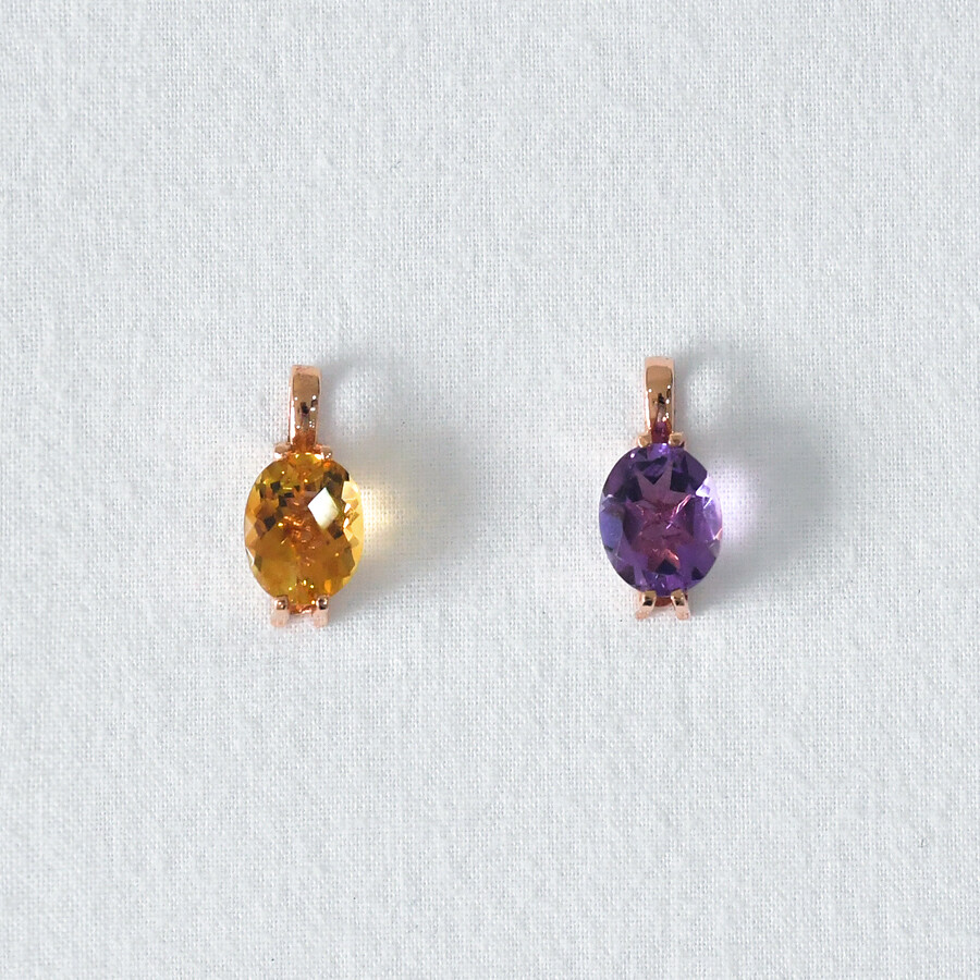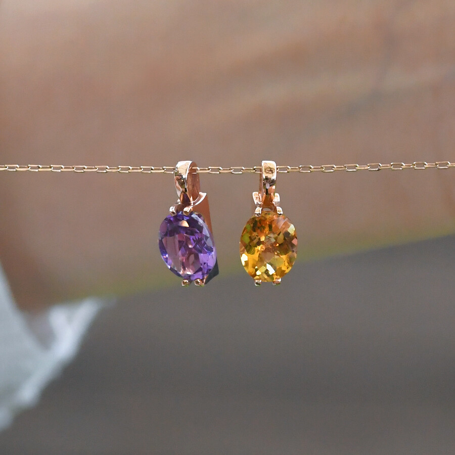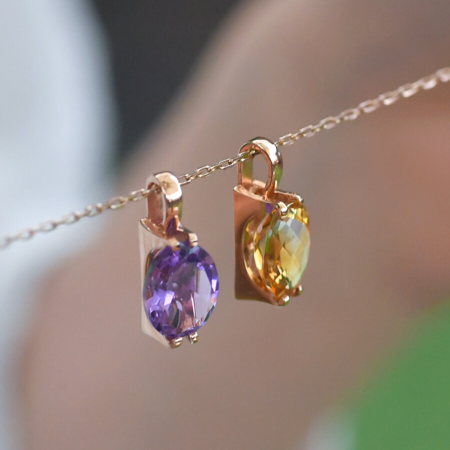 10X8 오벌컷 자수정 & 골든 시트린 높은 프롱 팬던트