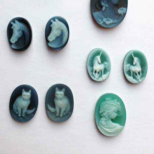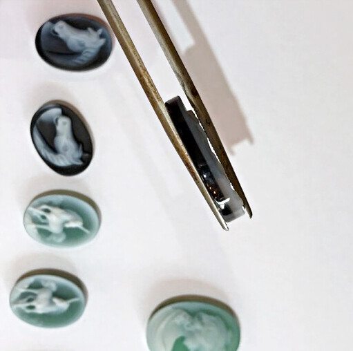카메오란, (?) 주로 아게이트나 칼세도니라는 유색 보석을 슬라이스하여, 주로 인물들을 양각하여 새겨놓은 것을 말합니다. 요 아이는 카메오를 전문적으로 아주 오랫동안 만들어온 전통 있는 독입 업체에서 입고된 천연의 카메오로, 기계가 아닌 장인의 손으로 직접 조각한 카메오라서 양각, 인각의 문양이 너무 섬세하게 잘 들어가 있답니다. 저렴한 가격대의 기계로 제작된 중국산 카메오는 기계로 찍어낸 플라스틱에 다른 원석이나 유리 등을 덧대서 이런 천연 카메오와 유사하게 만들어지지만, 천연 카메오는 주로 다양한 색상으로 구성된, (주로 흰색과 검정) 등의 원석을 골라서 슬라이스한 다음, 조각 등의 문양을 넣어 대조를 이루도록 카빙하는 방식으로 만들어진 것이랍니다. * 사이드 부분을 보면 전혀 접합된 부분이 없이 일체형으로 구성된 천연석임을 쉽게 알 수 있습니다.