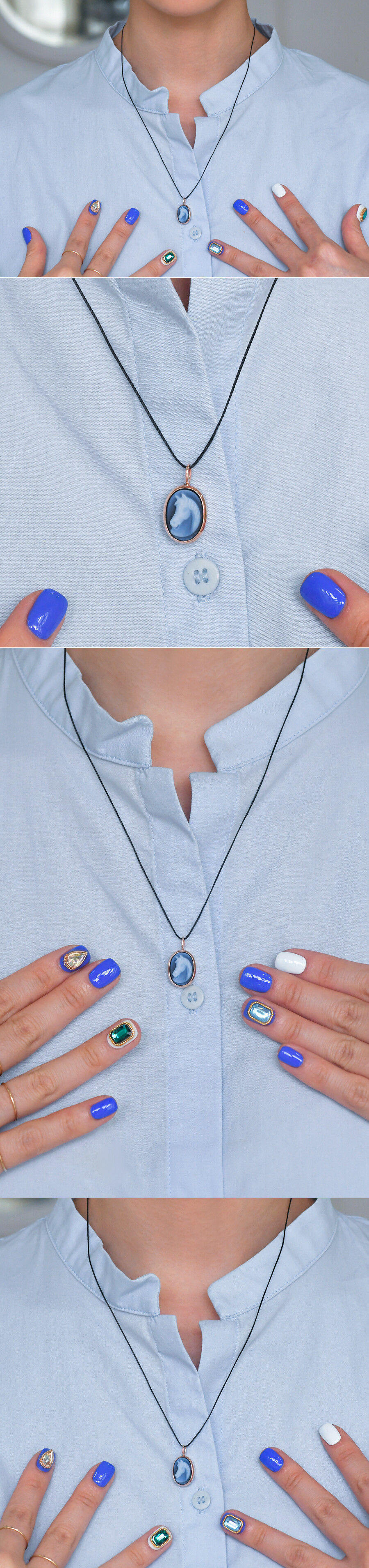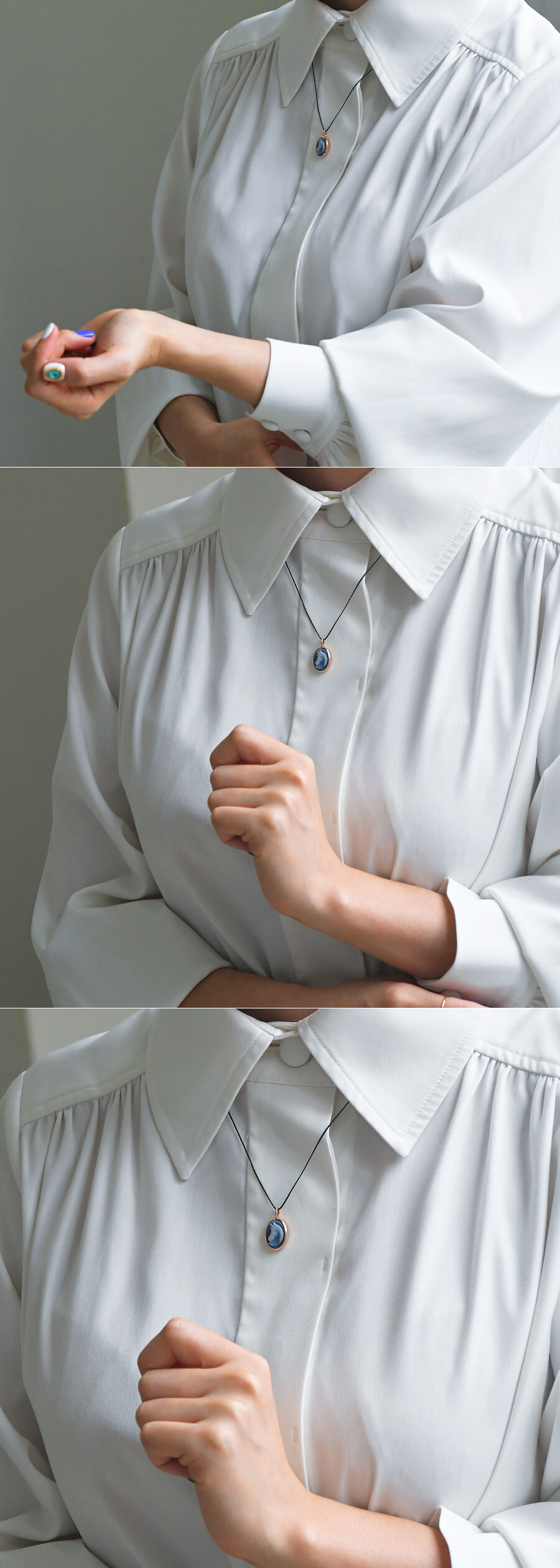 NO.1 고 높은 것 (블루 베이스) + 실크 체인과 레이어드 (45CM로 착용한 모습)