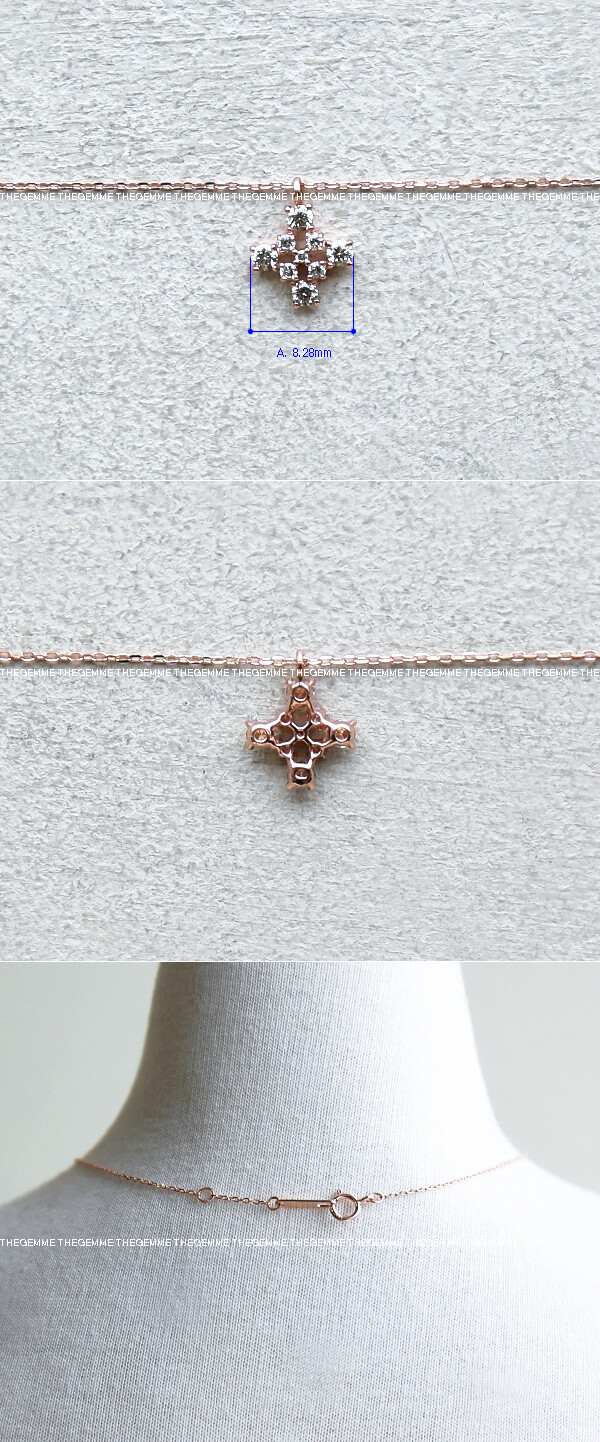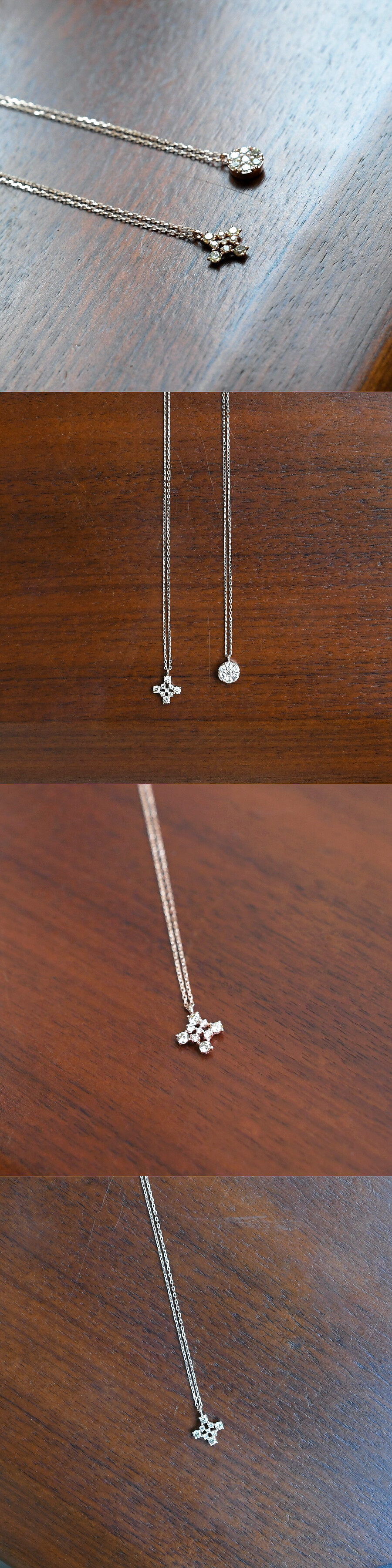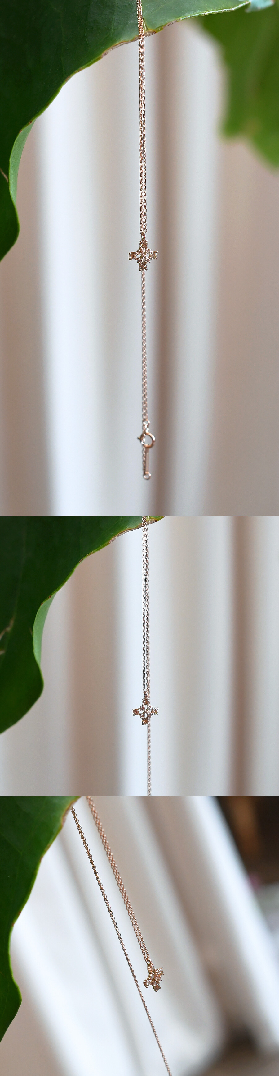 반짝반짝, 아름다운 브릴리언스를 뽐내는 코냑 다이아몬드가 세팅된 십자 팬던트 장식의 목걸이입니다. 2푼 굵기의 얇은 체인과 함께 레이어드 되어 미니멀한 느낌의 목걸이로 착용하시기 좋아요. 한 듯 안 한 듯 ~ 여리여리한 목걸이를 선호하시는 분들께 데일리 목걸이로 추천해 드릴게요 :)