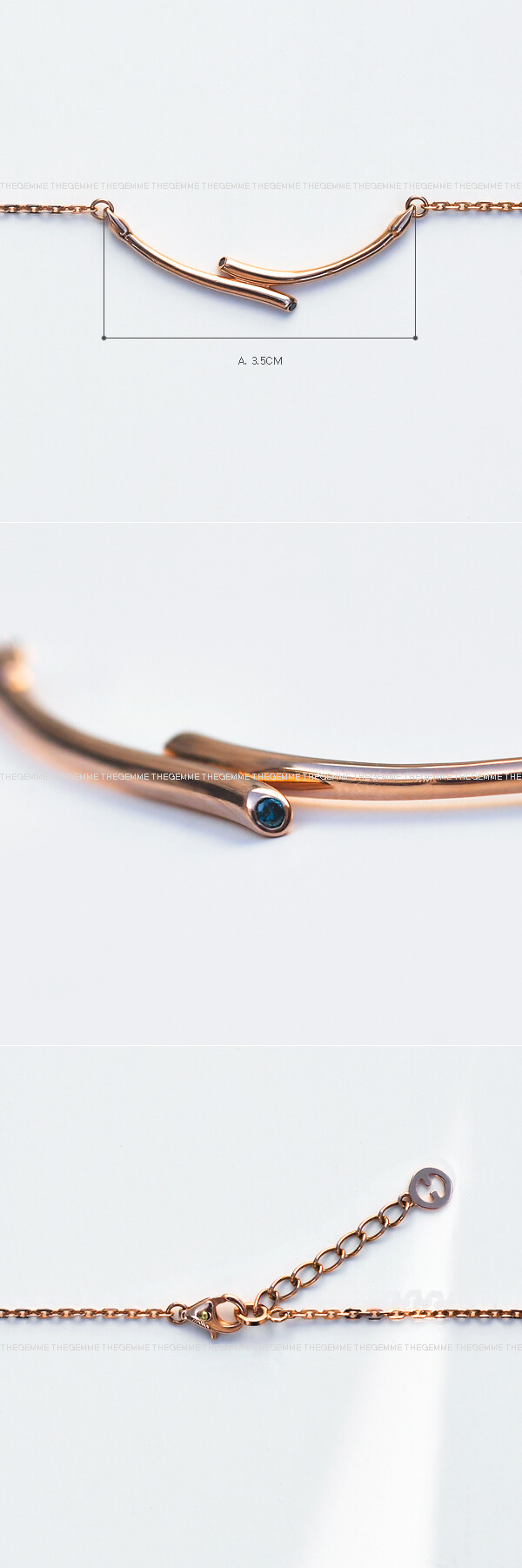 유니크한 스틱 디자인의 목걸이입니다. 파이프 라인의 튜브 모양을 갖춘 스틱과 체인이 연결된 형태이구요, 시크릿 디자인으로 목걸이 중앙의 포인트 부분을 자세히 보시면 멜리 사이즈의 블루 다이아몬드가 감쪽같이 숨어있답니다. 단조로우면서 특이한 디자인으로 데일리 및 포인트 목걸이로 추천해 드릴게요 :)