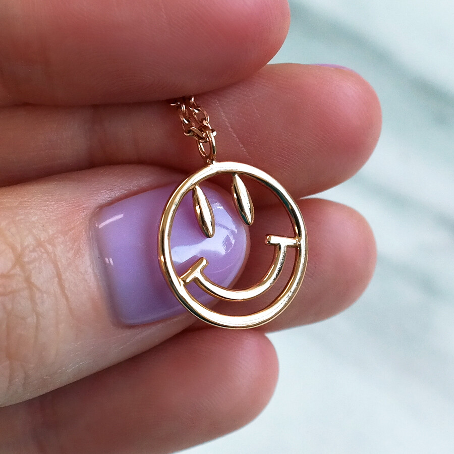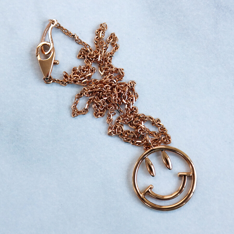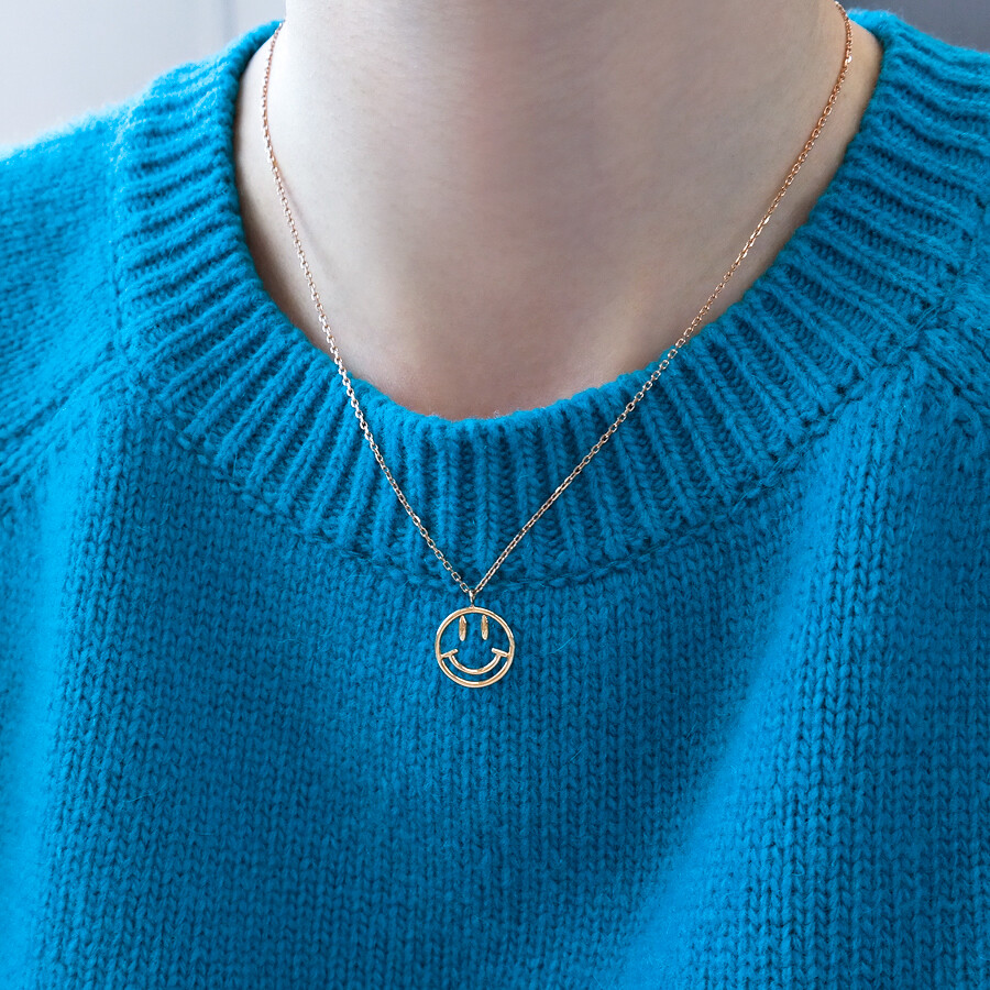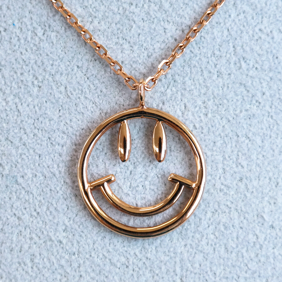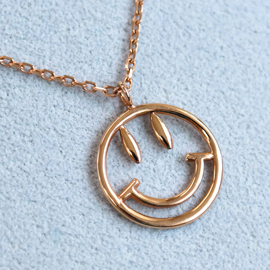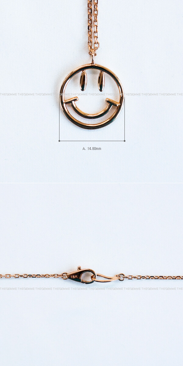 귀여운 표정을 짖고 있는 스마일 팬던트 장식의 목걸이입니다. 😊 체인과 일체형 디자인으로 팬던트 앞/뒷면의 모양이 동일하구요, 지름은 약 1.5CM로 사이즈가 어느 정도 있어서 5푼 굵기의 체인과 함께 레이어드 되었습니다. 캐주얼한 느낌의 목걸이를 좋아하시는 분들께 데일리 및 포인트 목걸이로 추천해드려요. ❤️