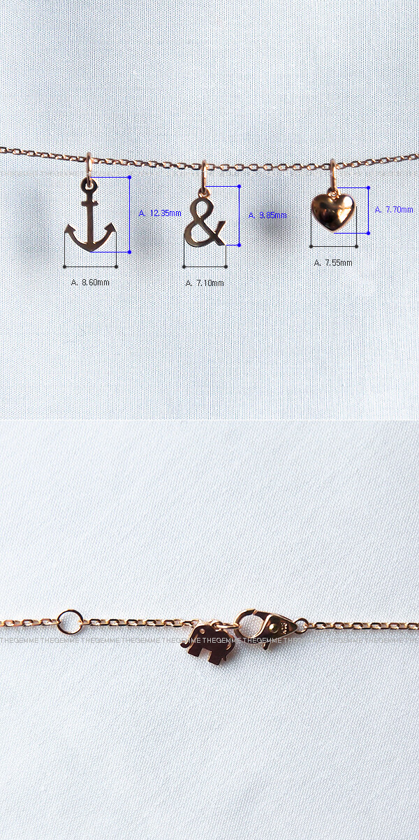 다양한 모양의 팬던트 장식이 들어간 유니크한 디자인의 목걸이입니다. 일체형 목걸이로 3개의 팬던트가 체인 내에서 자유롭게 움직이는 형태에요. 잠금 장식 부분에는 귀여운 코끼리 장식이 있답니다 :) 적당한 중량감으로 데일리 목걸이로 착용하시기 좋아요. 유니크한 디자인의 데일리 및 포인트 목걸이를 찾으시는 분들께 추천해 드릴게요.♥ * 본 페이지는 화살 & 하트 디자인 구매 페이지 입니다.