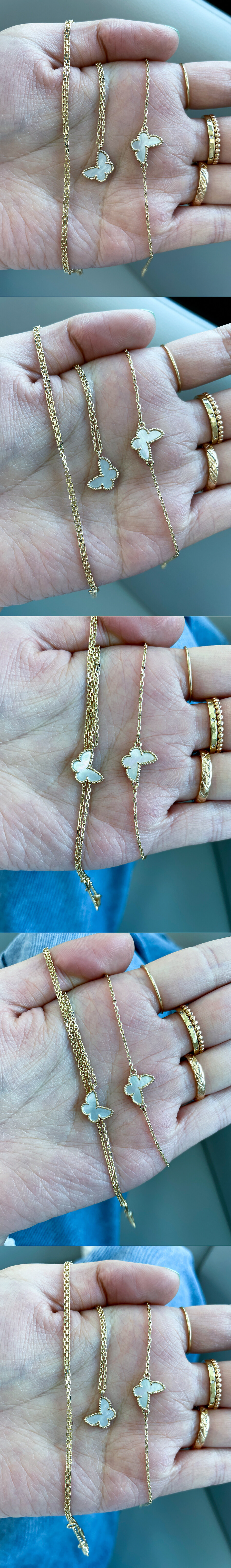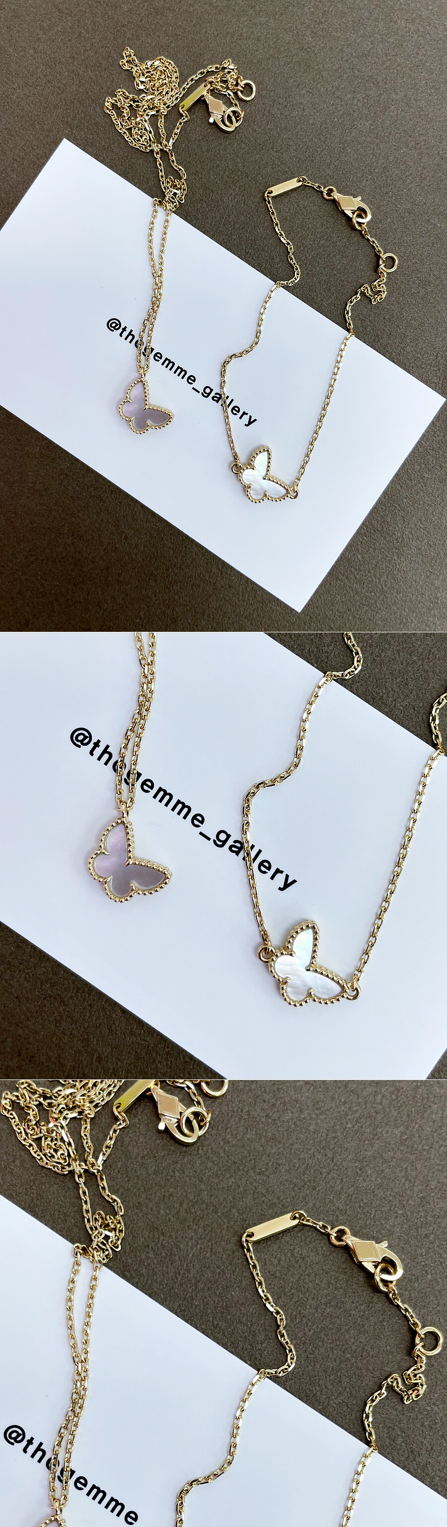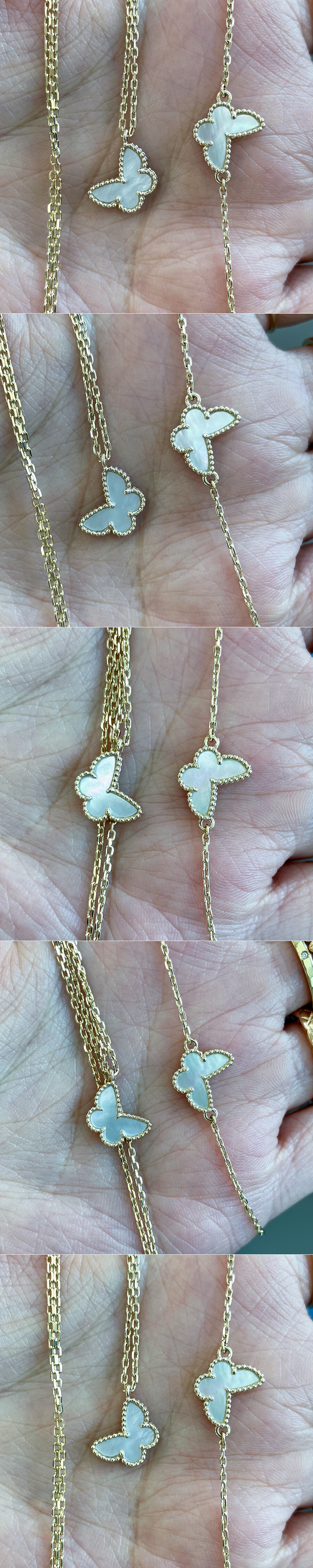 너무 예쁘고 스윗한 화이트 자개가 세팅된 나비 목걸이입니다. 여성스러운 느낌을 마음껏 뽐내실 수 있는 디자인으로 따로 설명이 필요하지 않은 아이! 아주 정교하고 섬세한 디자인으로 만족도 높은 퀄리티를 확실하게 느끼실 수 있는 최고급 프리미엄 라인 하이 주얼리 제품 입니다. 은은한 화이트 컬러의 자개와 자체 옐로우 골드가 기성 디자인이구요, 다른 골드 색상을 원하신다면 선택하신 색상으로 제작 가능합니다. 5푼 각줄 체인과 함께 레이어드 된 디자인이라 가볍지 않은 디자인이에요. 여성스러우면서 고급스러운 이미지 연출을 원하시는 분들께 적극 추천해 드릴게요. 🩷