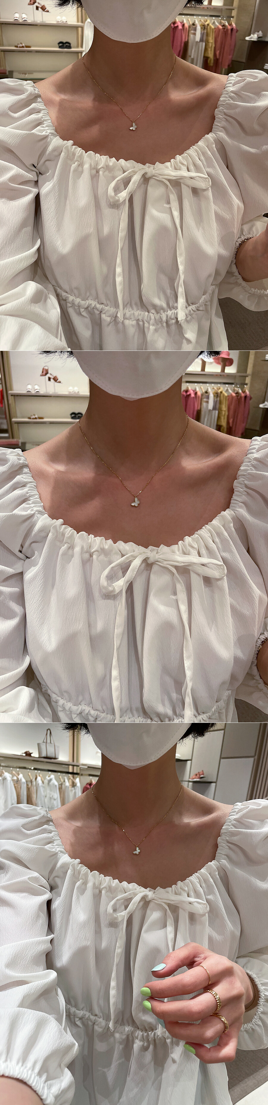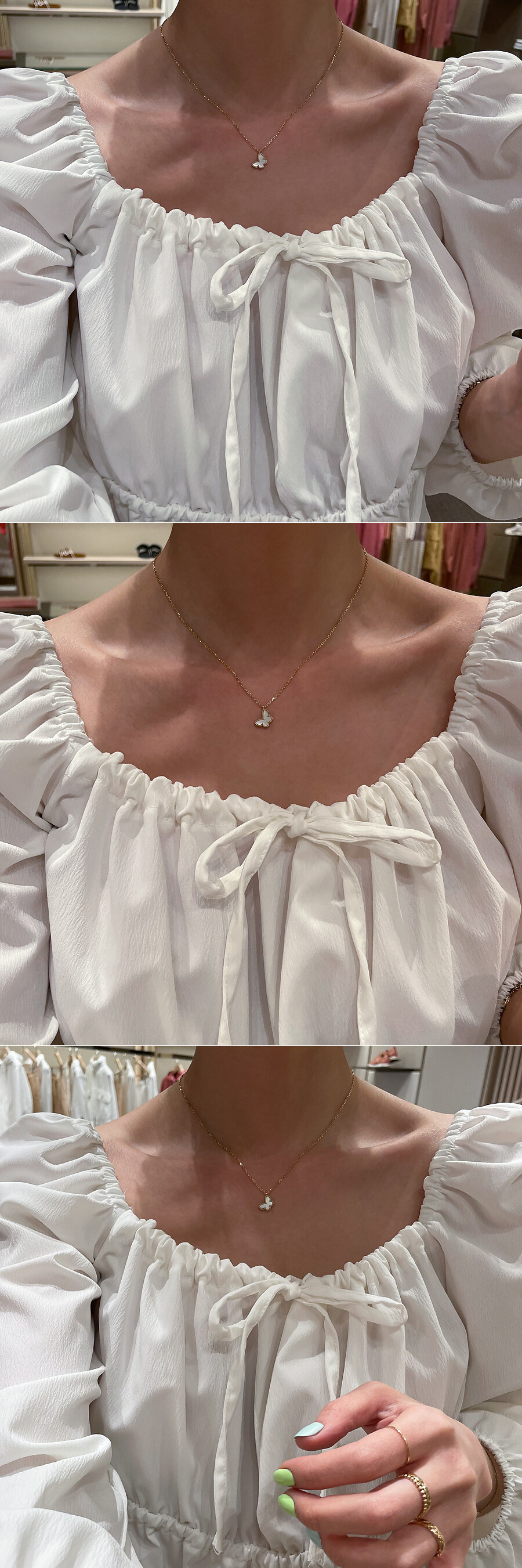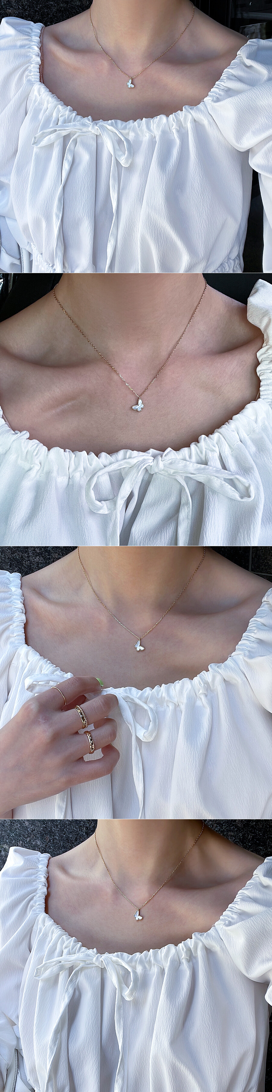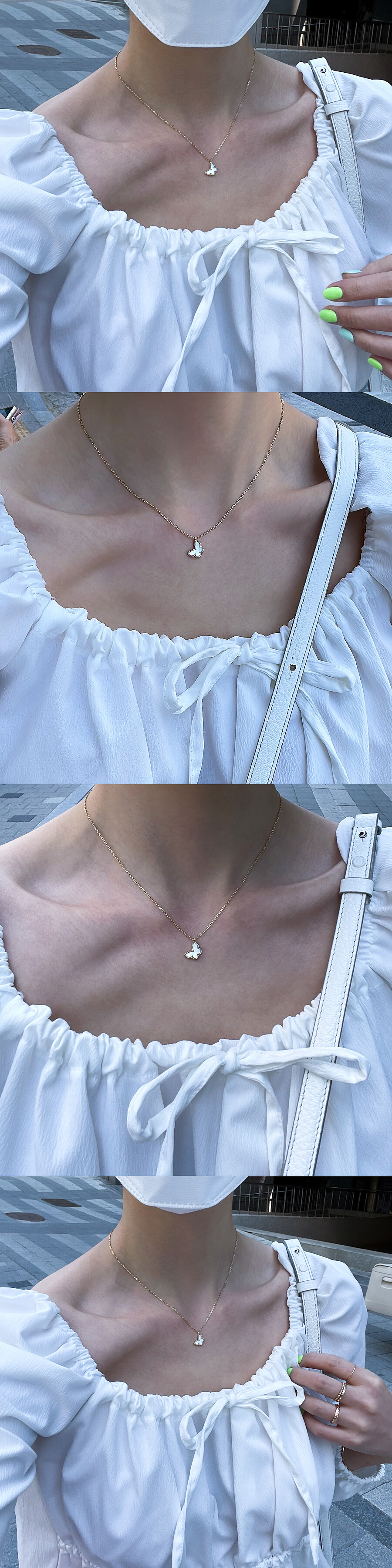 [Premium(S)] 스윗 버터플라이 화이트 자개 나비 목걸이