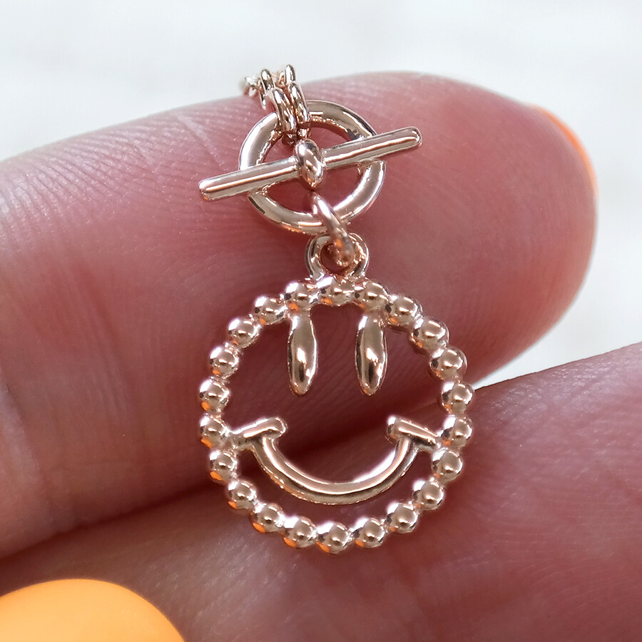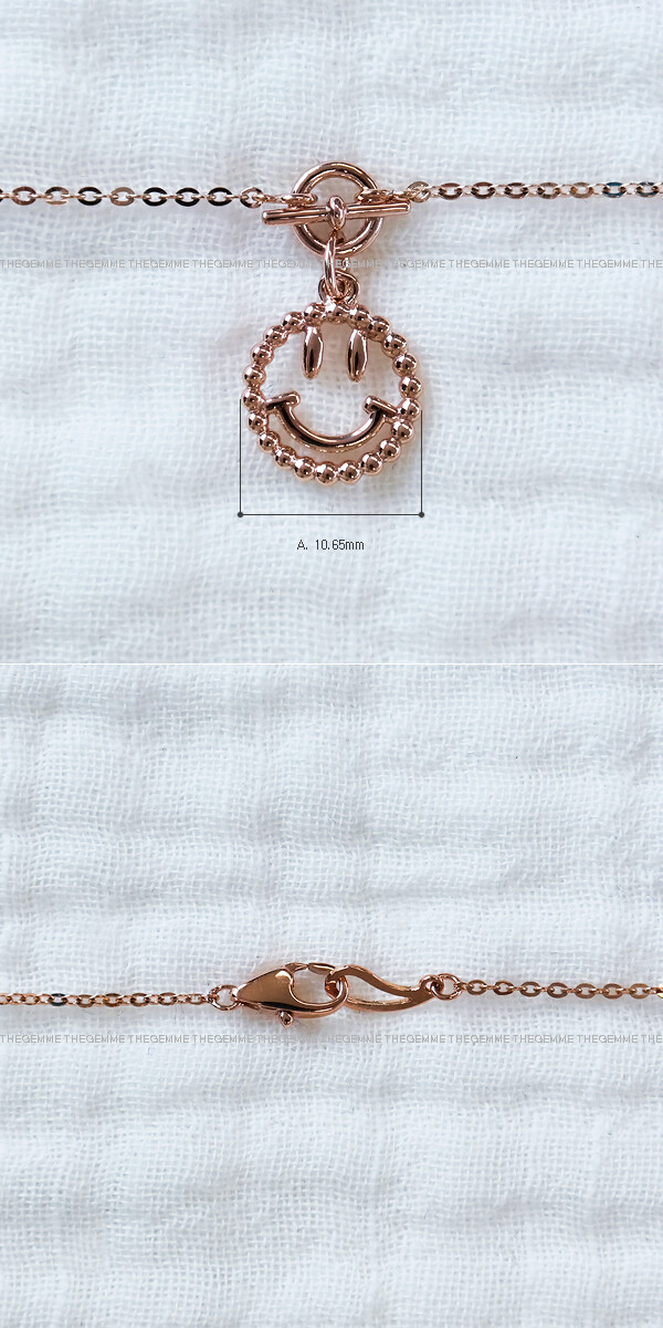 귀엽게 웃고 있는 스마일 디자인 목걸이입니다. 프레임 부분이 버블 스타일로 되어있어 귀여운 느낌이 한가득이에요. 메인 부분에 OT 장식이 포인트로 들어가 있는데 고정된 스타일이며 잠금 장식은 뒷면에 따로 있습니다. 참고해 주시구요, 가볍게 착용하시기 좋은 데일리 및 포인트 목걸이로 추천해 드릴게요 :)