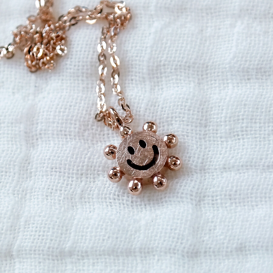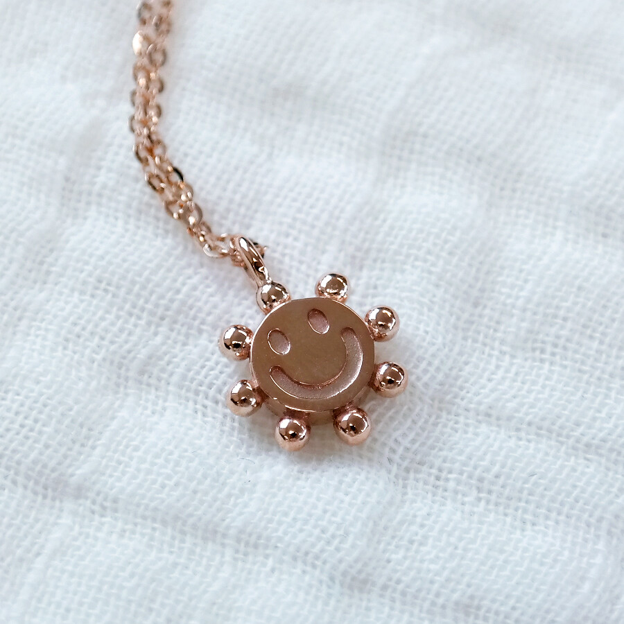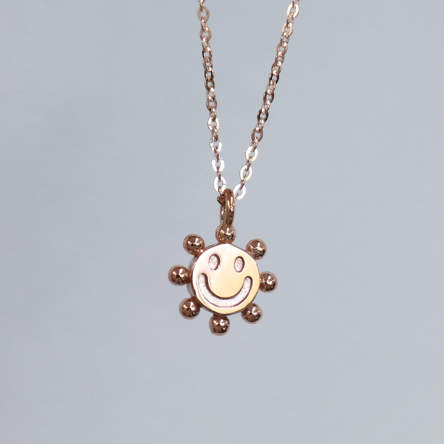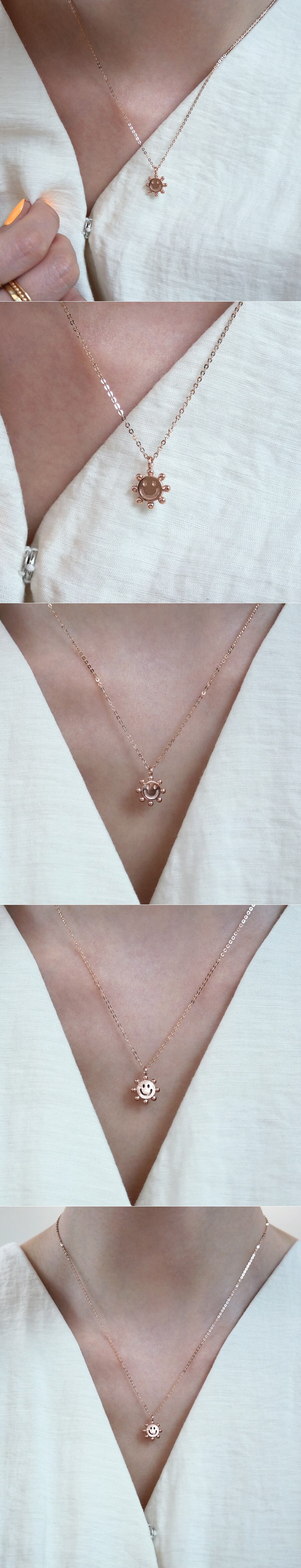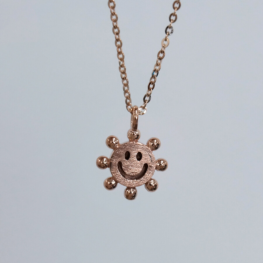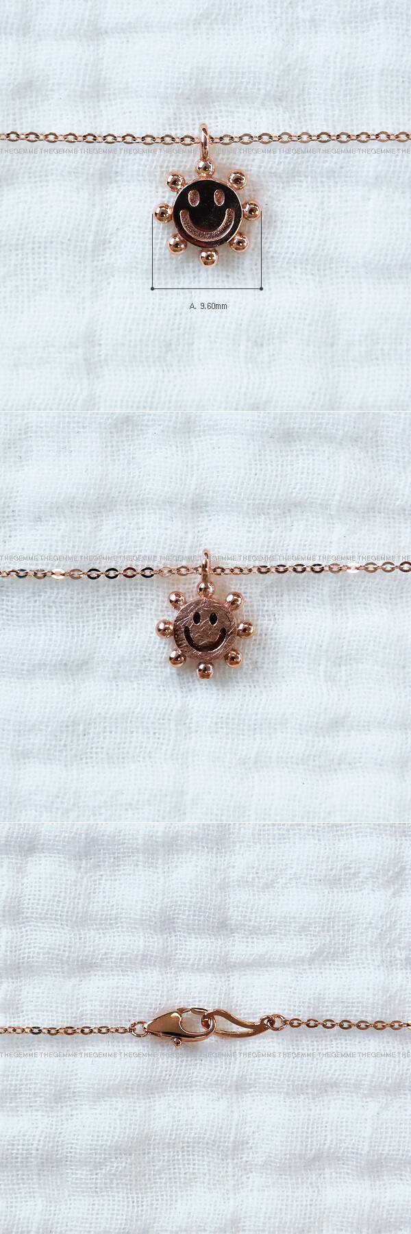 귀여운 스마일 표정을 짓고 있는 햇님 디자인 목걸이입니다. 팬던트 양면에 디자인이 들어가 있는 형태로 앞면과 뒷면의 마감이 약간 다르게 들어가 있어요. 한쪽은 유광, 다른 한쪽은 앤틱한 무광 처리로 제작된 디자인입니다. 귀여운 느낌의 데일리 목걸이를 찾으시는 분들에게 추천해 드릴게요. ❤️
