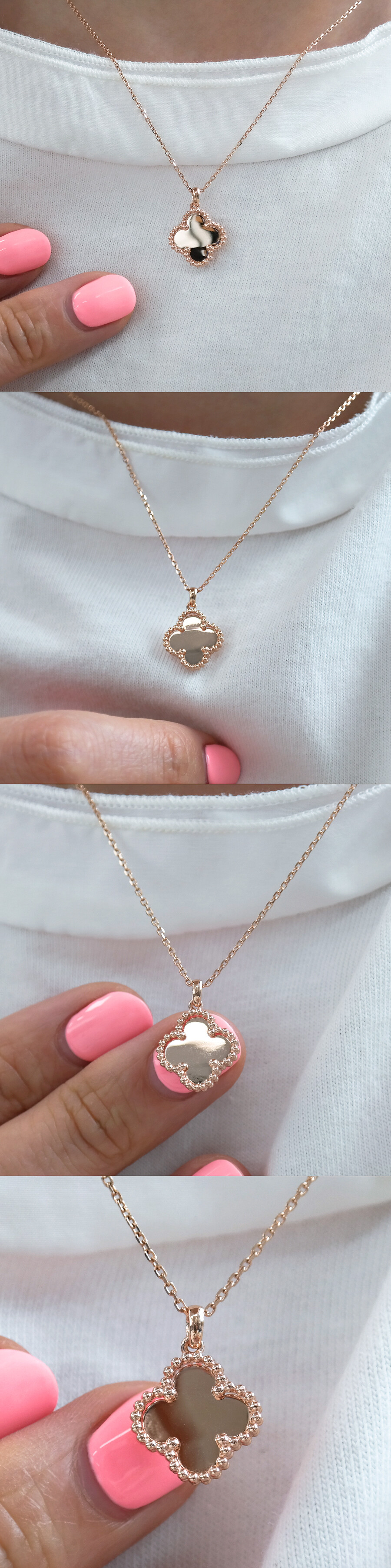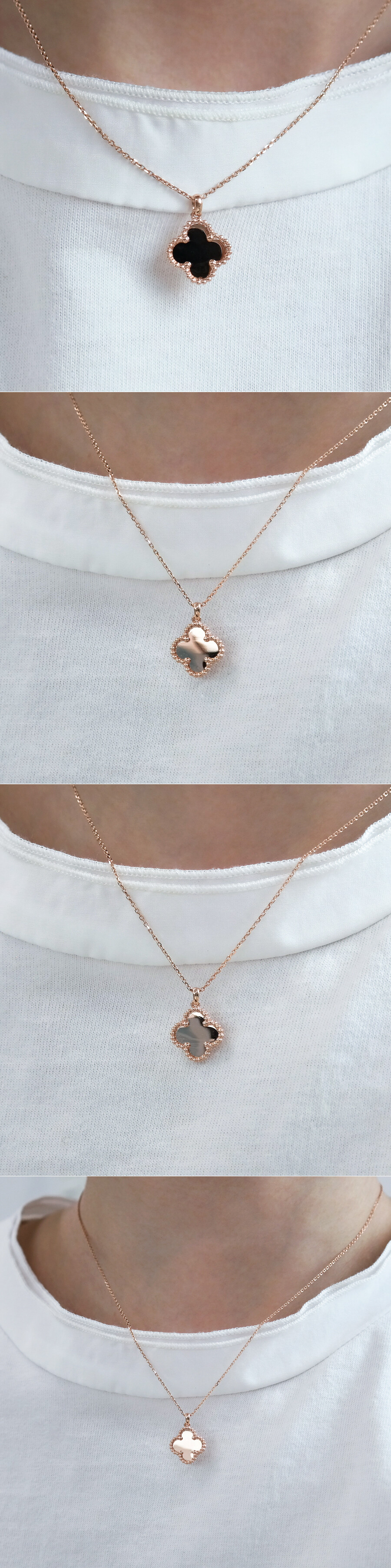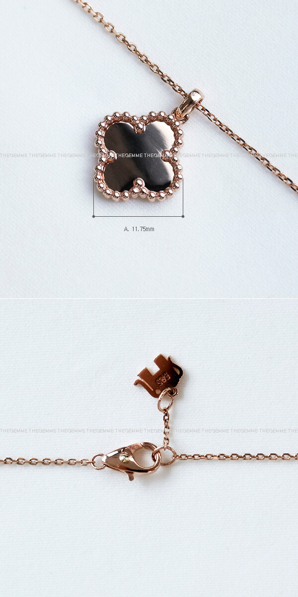 플랫한 디자인의 크로버 목걸이입니다. 어디에나 잘 어울리는 디자인이라 데일리 목걸이로 추천해 드려요. * 마감장식에 귀여운 코끼리 참이 있어요. 💖