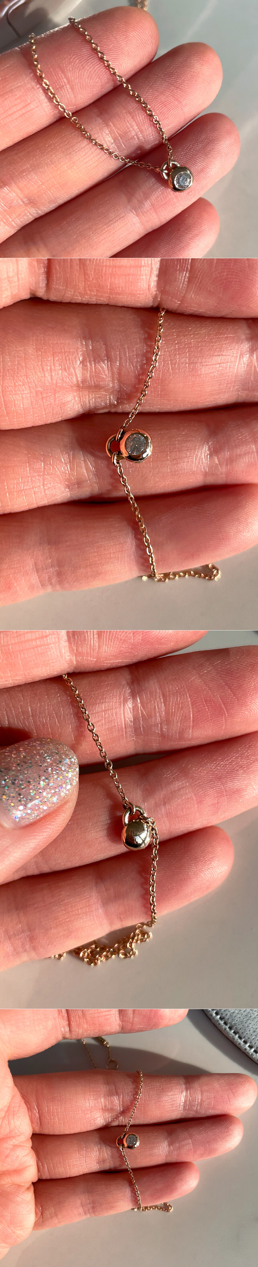 동글동글~ 자물쇠 모양을 닮은 심플한 디자인의 목걸이입니다. 1부 사이즈의 스톤이 세팅된 목걸이에요. 촬영된 이미지에는 큐빅이 셋팅되었구요, 원하시는 경우 옵션에서 랩 (합성) 다이아몬드 및 천연 다이아몬드로도 선택하셔서 주문 가능하십니다. ( * 랩/합성 다이아몬드 선택 시 - 랩/합성 다이아몬드 중에서도 가장 최상급으로 세팅, 천연 다이아몬드 선택 시 - 감정서가 포함되지 않은 최상급 모노 다이아몬드가 세팅됩니다. 감정서가 포함된 (우신 & GIA) 다이아몬드로도 변경을 원하시는 분들은 네이버 톡톡으로 따로 문의주시면 상담 도와드리겠습니다.) 보시다시피 군더더기 없이 깔끔한 디자인으로 어떤 코디에도 잘 어울리는 디자인의 목걸이입니다. 작지만 볼드한 느낌이 있어서 데일리용 목걸이로 착용하시기 아주 좋답니다. 선물용 목걸이로도 완전 추천해 드려요. 💖